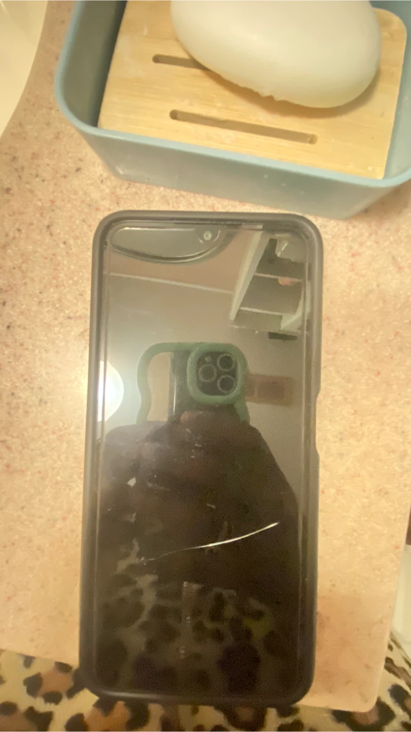 This Samsung Galaxy A13 smartphone has a 5000 mAh battery. It features a triple camera setup on the back. A ring holder is attached to the back for easier handling.