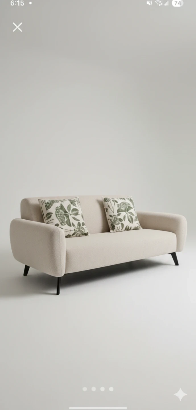 Cream Boucle Sofa with Decorative Pillows