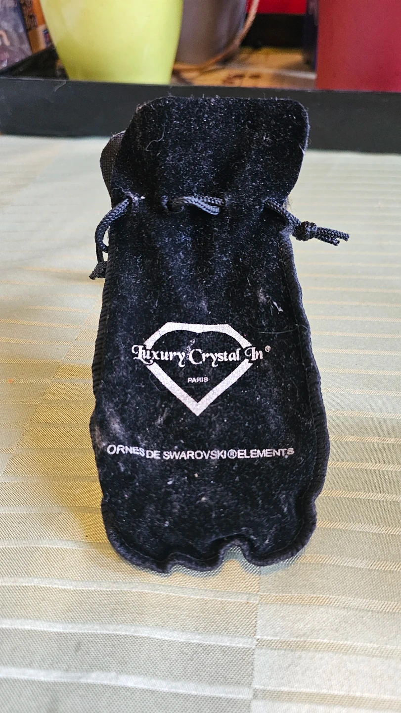 It has 8 Swarovski crystals, features a date display and is water resistant 3 ATM. Includes original velvet pouch. Steel cased.