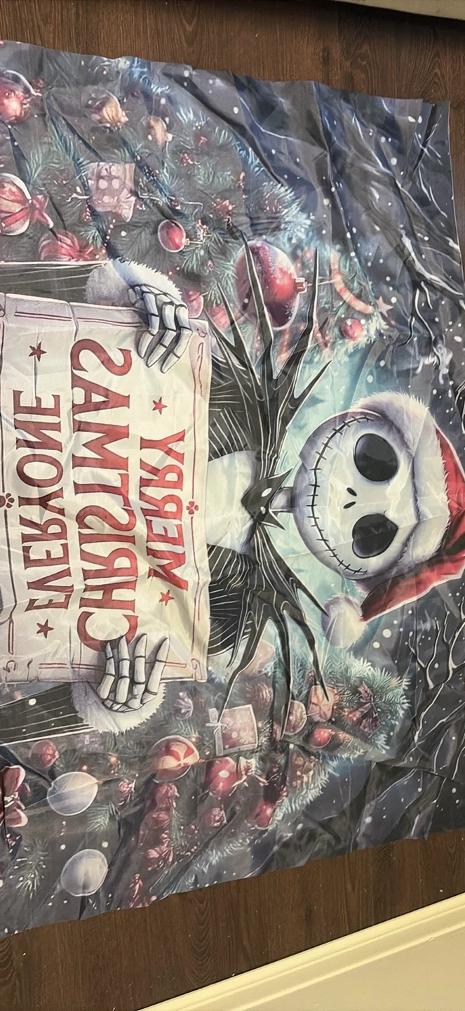 This tapestry features Jack Skellington with a festive Christmas tree design. It's perfect for adding a spooky yet holiday touch to your room! Measures approximately 50" x 60". Pick up, cash only. open to negotiation