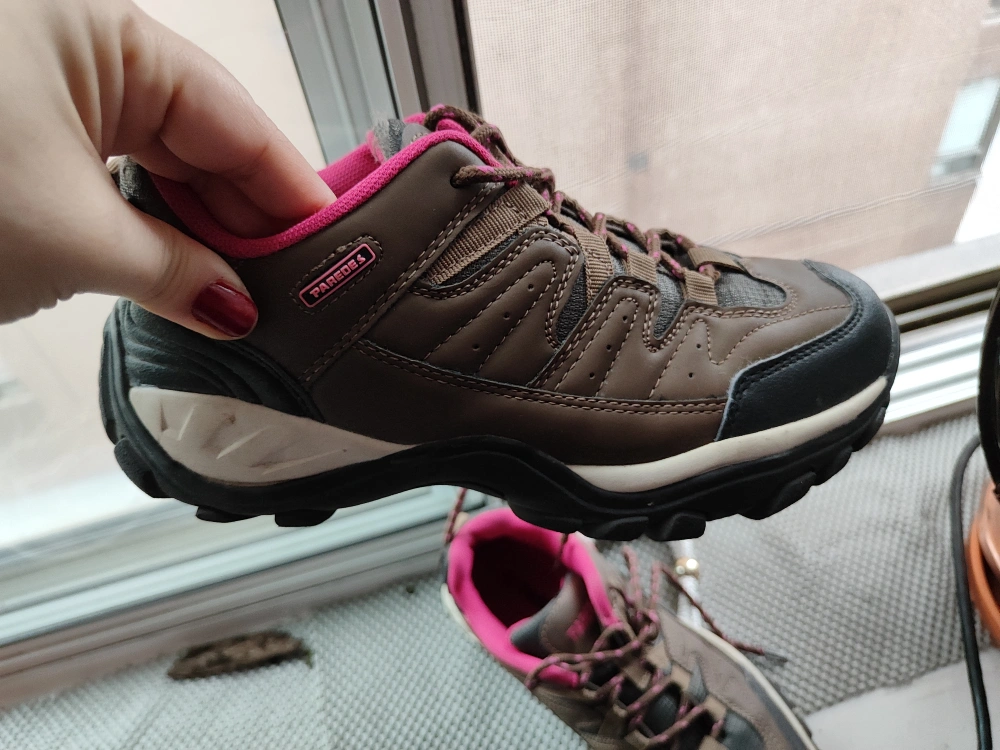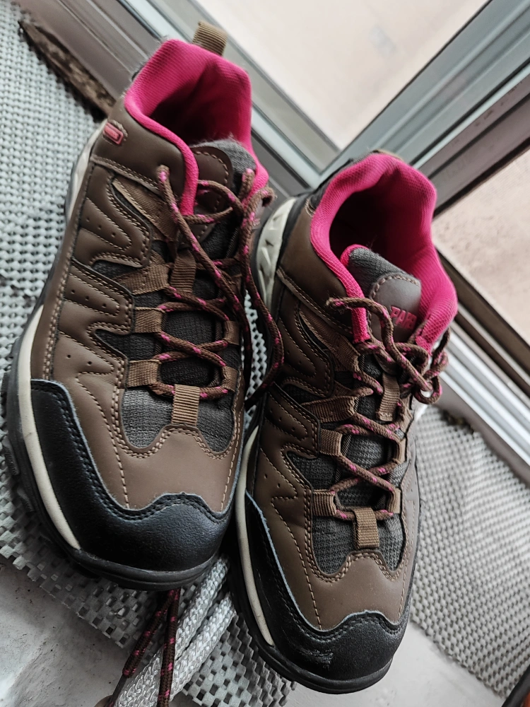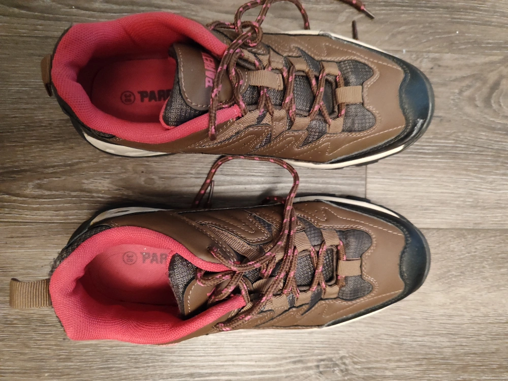 Pair of brown hiking shoes for the Spanish brand Paredes. Lace-up closure. Pink interior. Good for outdoor adventures, lightweight. Worn 4-5 times in the city.
