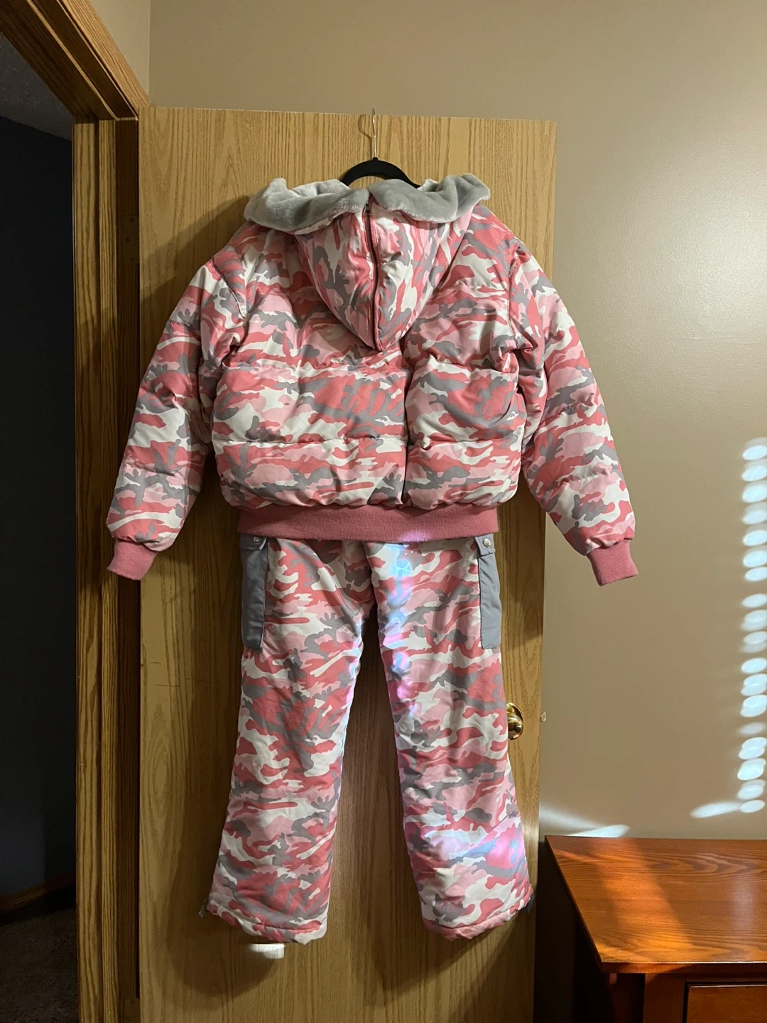 LADIES PINK CAMOUFLAGE JACKET/SNOWPANT SUIT (Size Large)