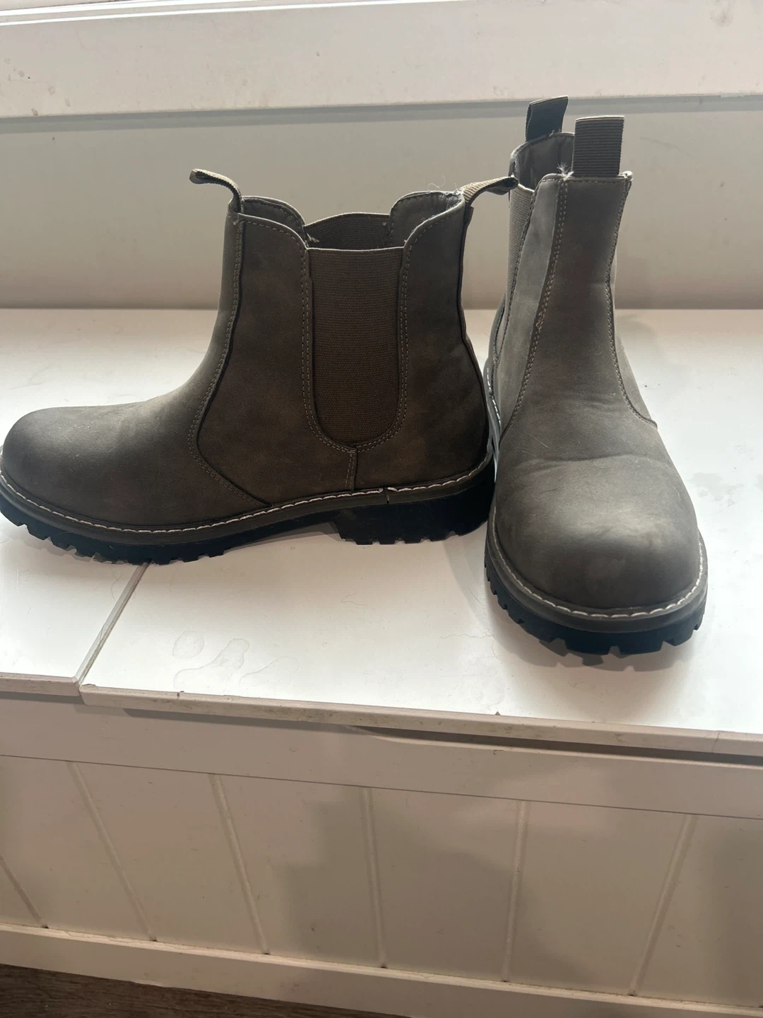 *BRAND NEW* Selling a pair of women’s Chelsea style boots in a stylish grey colour. These are brand new, never been worn. Perfect for everyday wear! I wear a size 8, but bought them a size bigger to wear with thicker socks…super cute with wool socks!