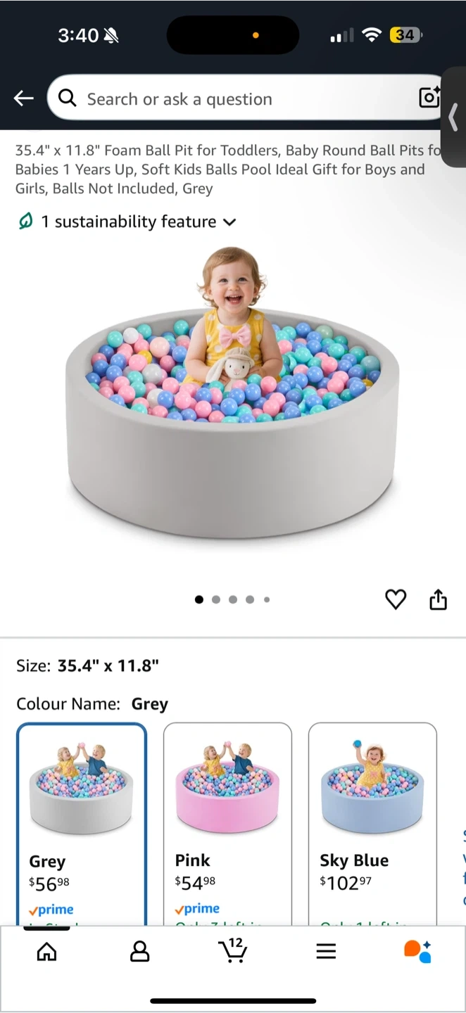Selling a 35.4" x 11.8" foam ball pit for toddlers! It's a soft, round ball pit ideal for babies 1 year and up. Colour is grey.