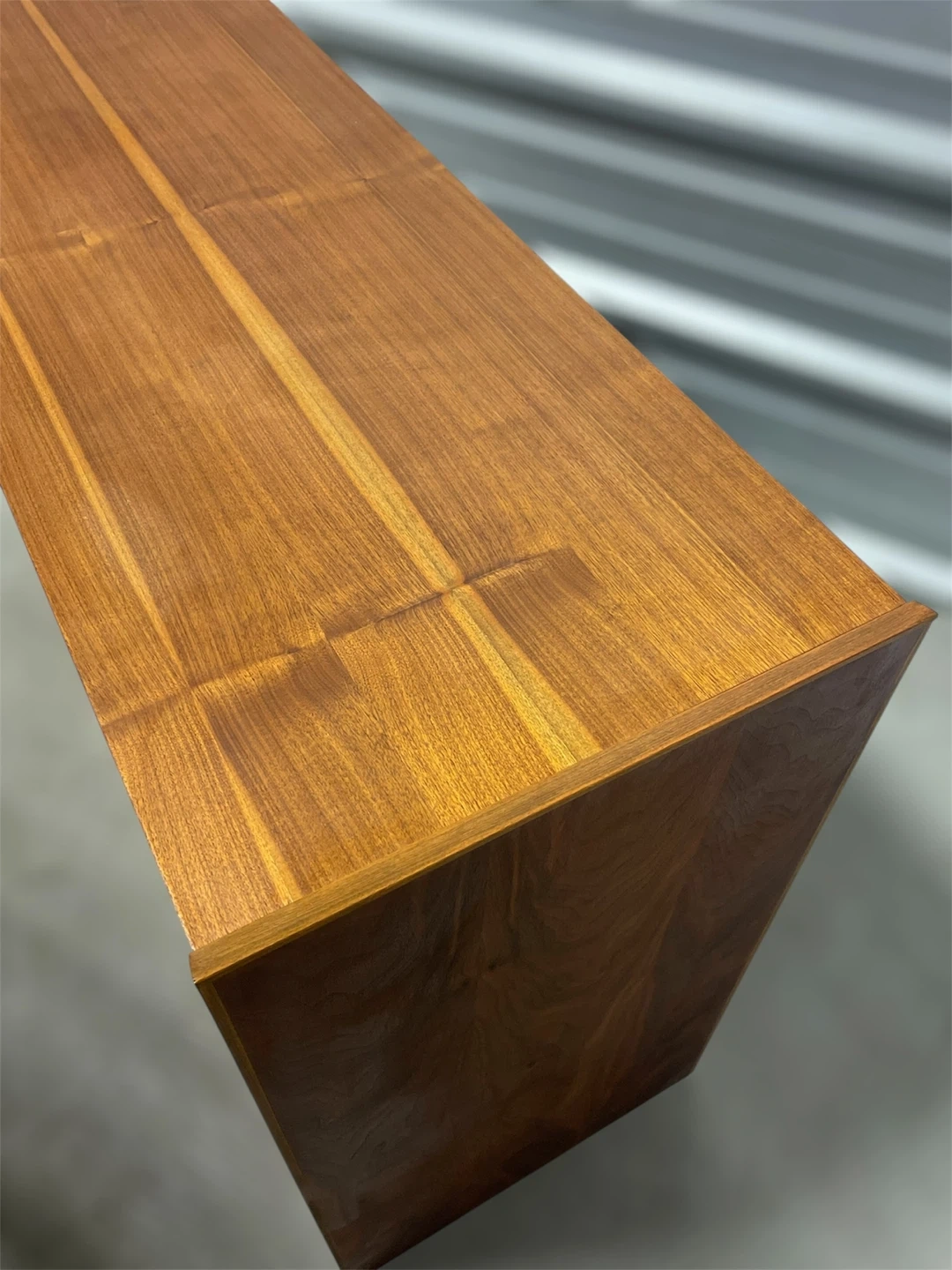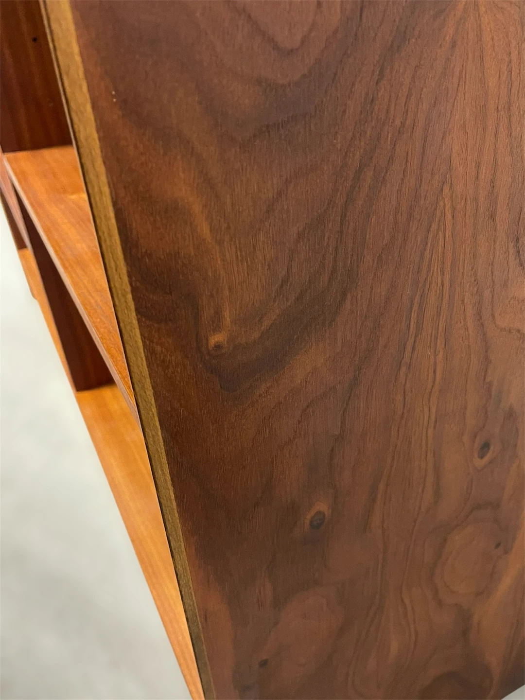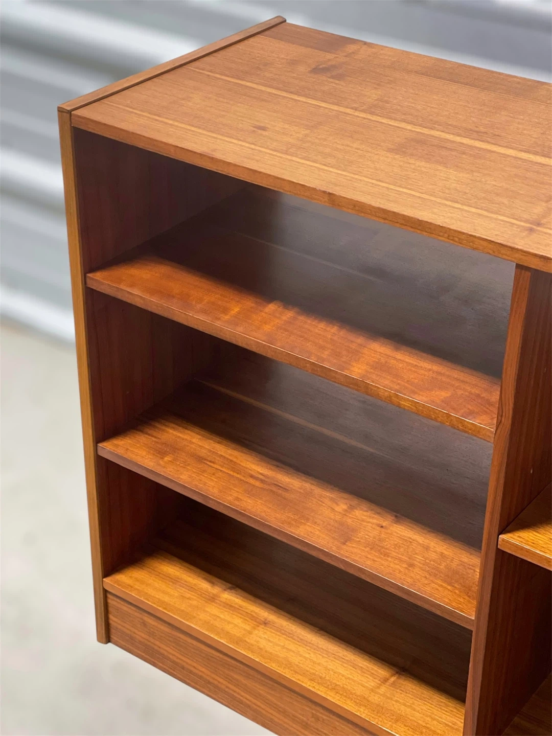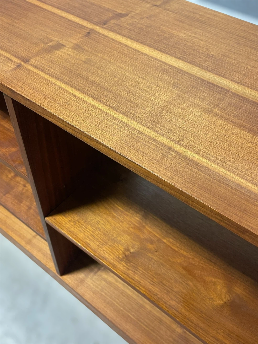 Mid-century modern modular open walnut bookcase or sideboard designed during the 1960s featuring three adjustable shelves. Excellent condition.