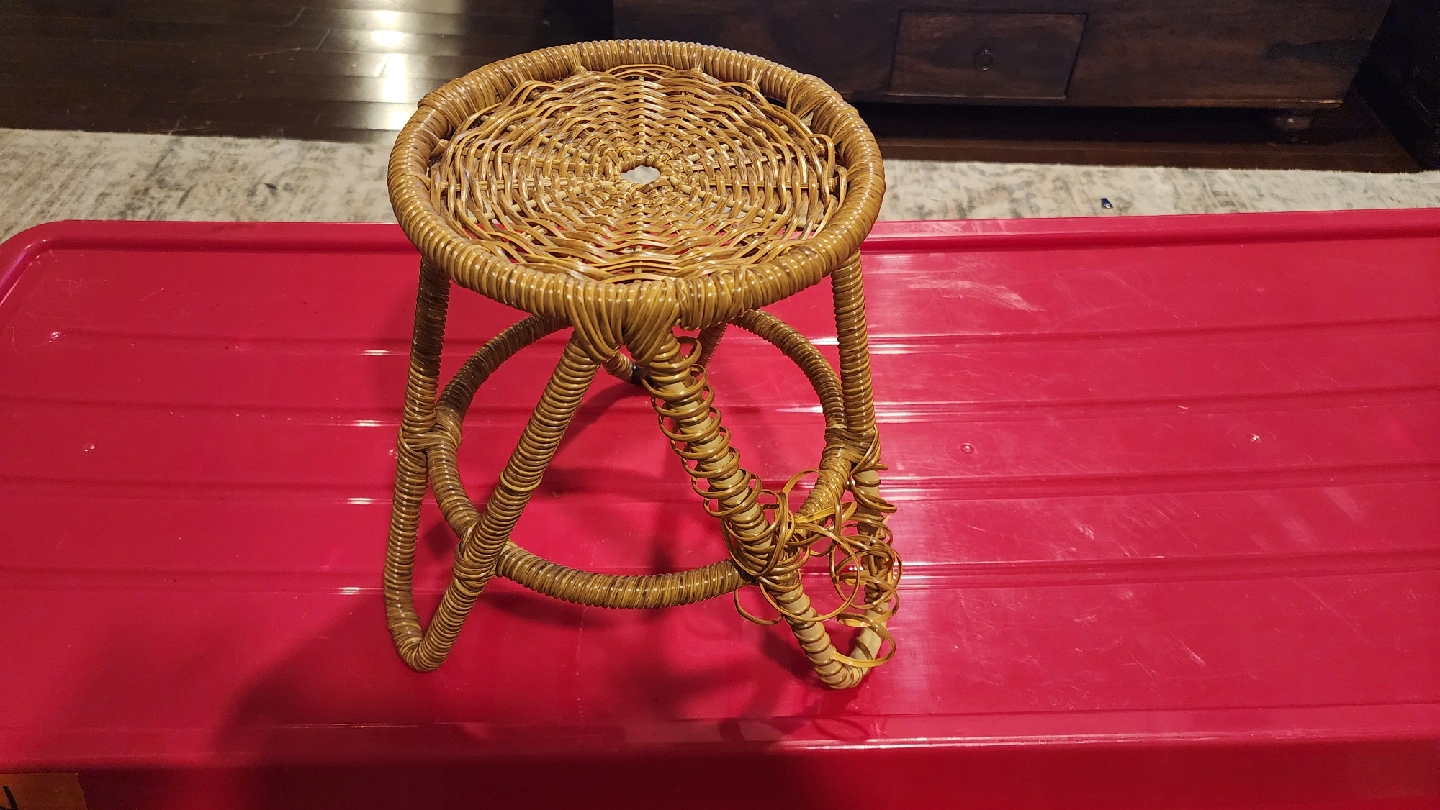 Selling a cute wicker plant stand or stool! It's perfect for adding a touch of natural charm to your home. Needs a bit of tlc with the cosmetic wrapping but the underlying metal frame is solid.
