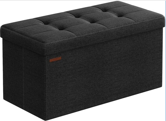 This brand new SONGMICS ottoman is stylish and functional, providing ample storage space within its 38 x 76 x 38 cm frame and supporting up to 300 kg. The sleek black design complements any room! Dimensions: 38 x 76 x 38 cm. Colour: Black. Brand: SONGMICS. Maximum Load Capacity: 300 kg. If you're seeing this ad, it means this wonderful ottoman is still available for a new home. Cash accepted.