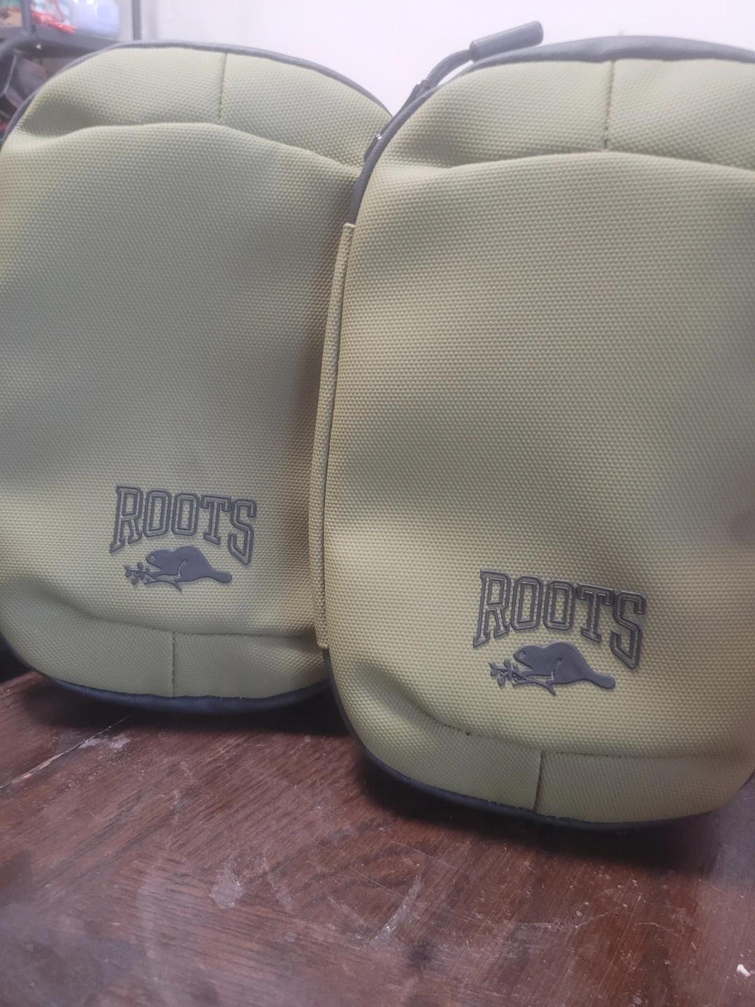 This is a Roots pouch organizer. It's made of durable fabric and has multiple compartments for storage. Elastic straps and a zippered pocket help keep items secure. 2 for $25 or $15 each. Dm me for location cash or etransfer only pick up only