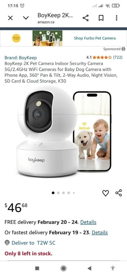 This BoyKeep K30 indoor security camera offers a 360° view, color night vision, and motion tracking. It connects via 5G WiFi and works with Alexa.