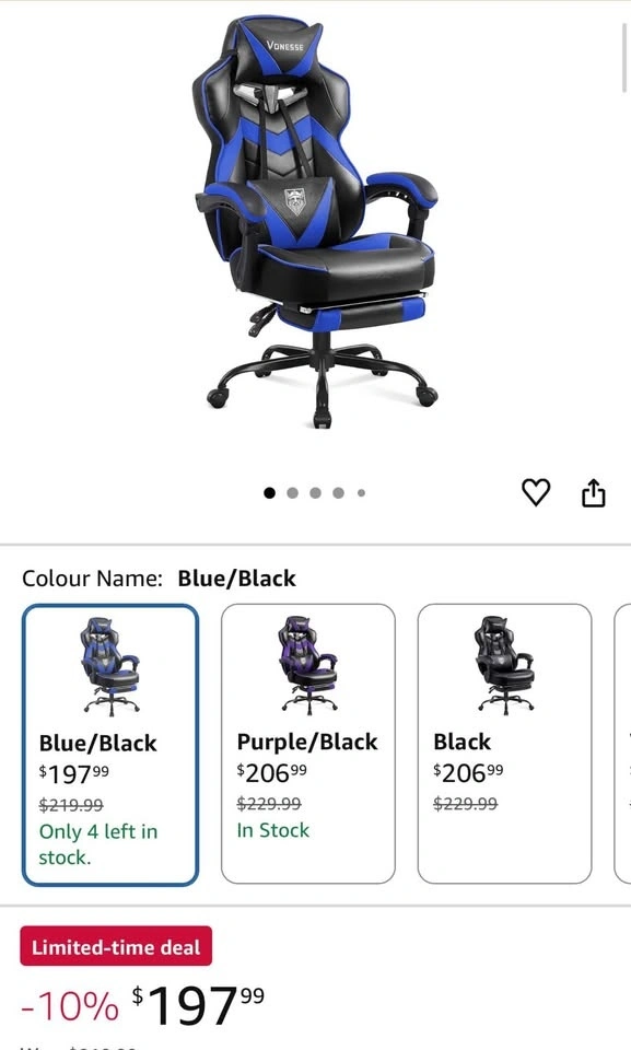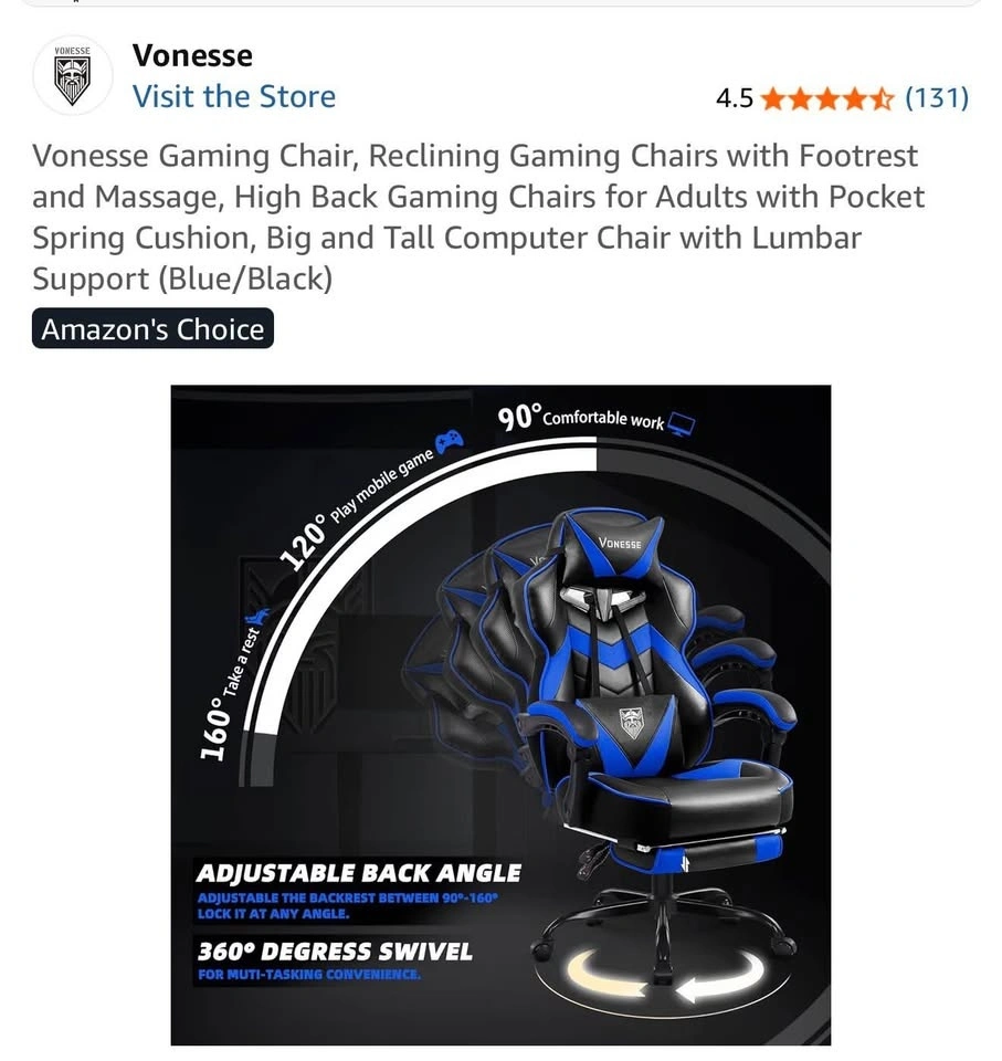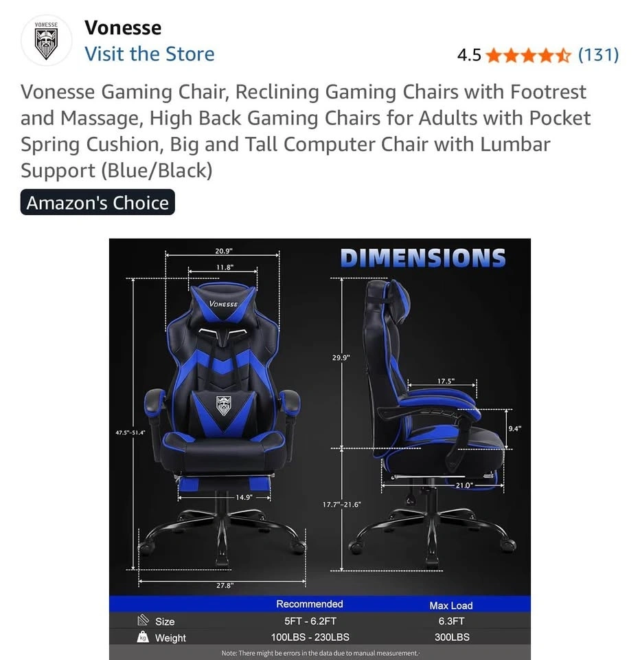 Selling a Voness Gaming Chair (Blue/Black) in brand new condition. Just assembled to check, never used. Very comfortable and stylish β perfect for gaming, office work, streaming or studying.
