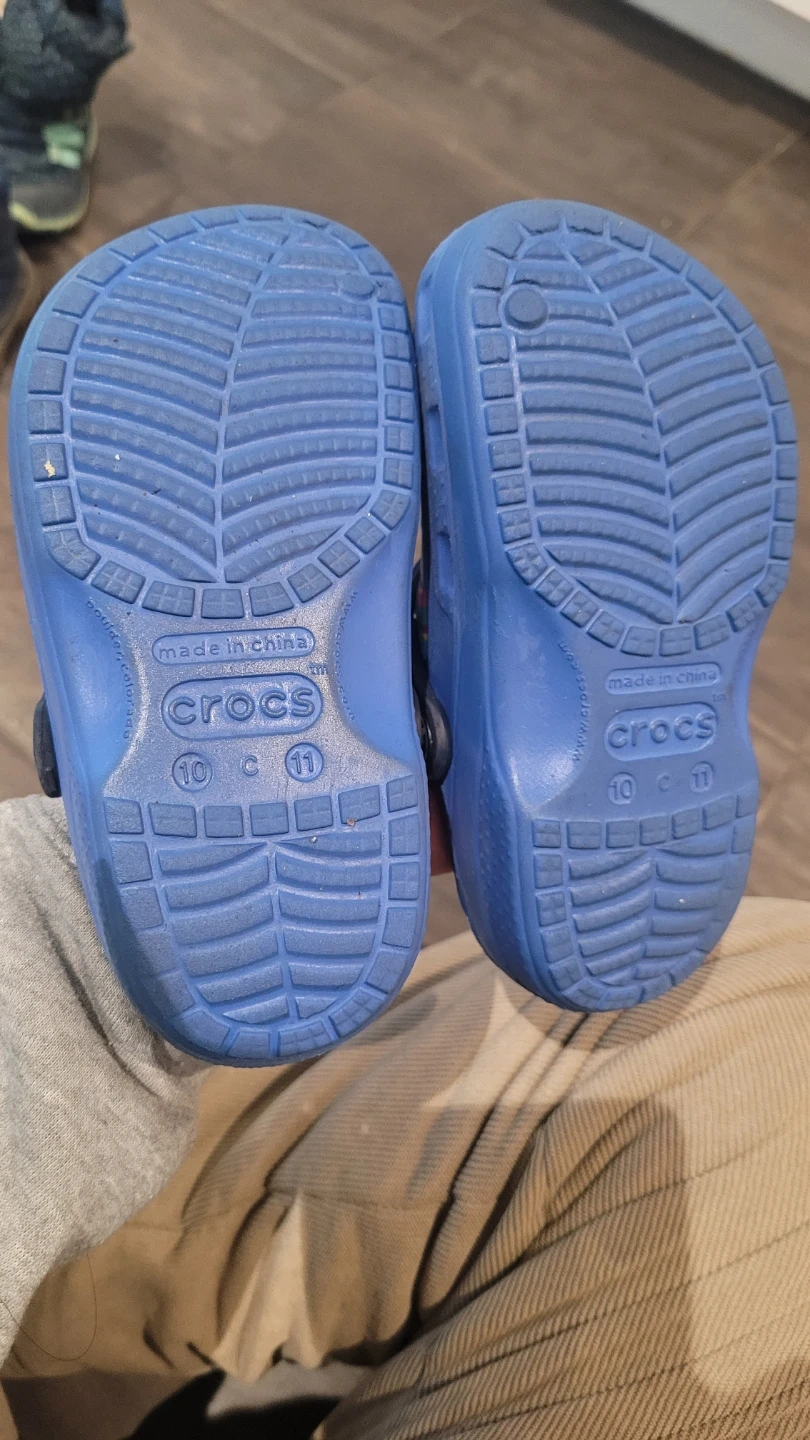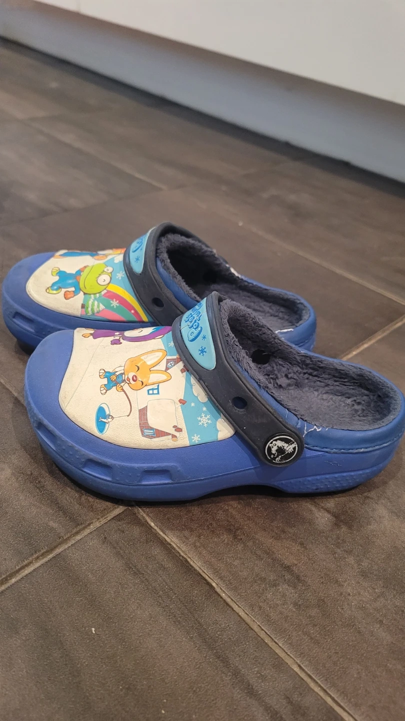 These adorable Crocs feature Pororo & Friends characters! They're blue and lined with soft material, perfect for keeping little feet cozy. Size is 10C/11