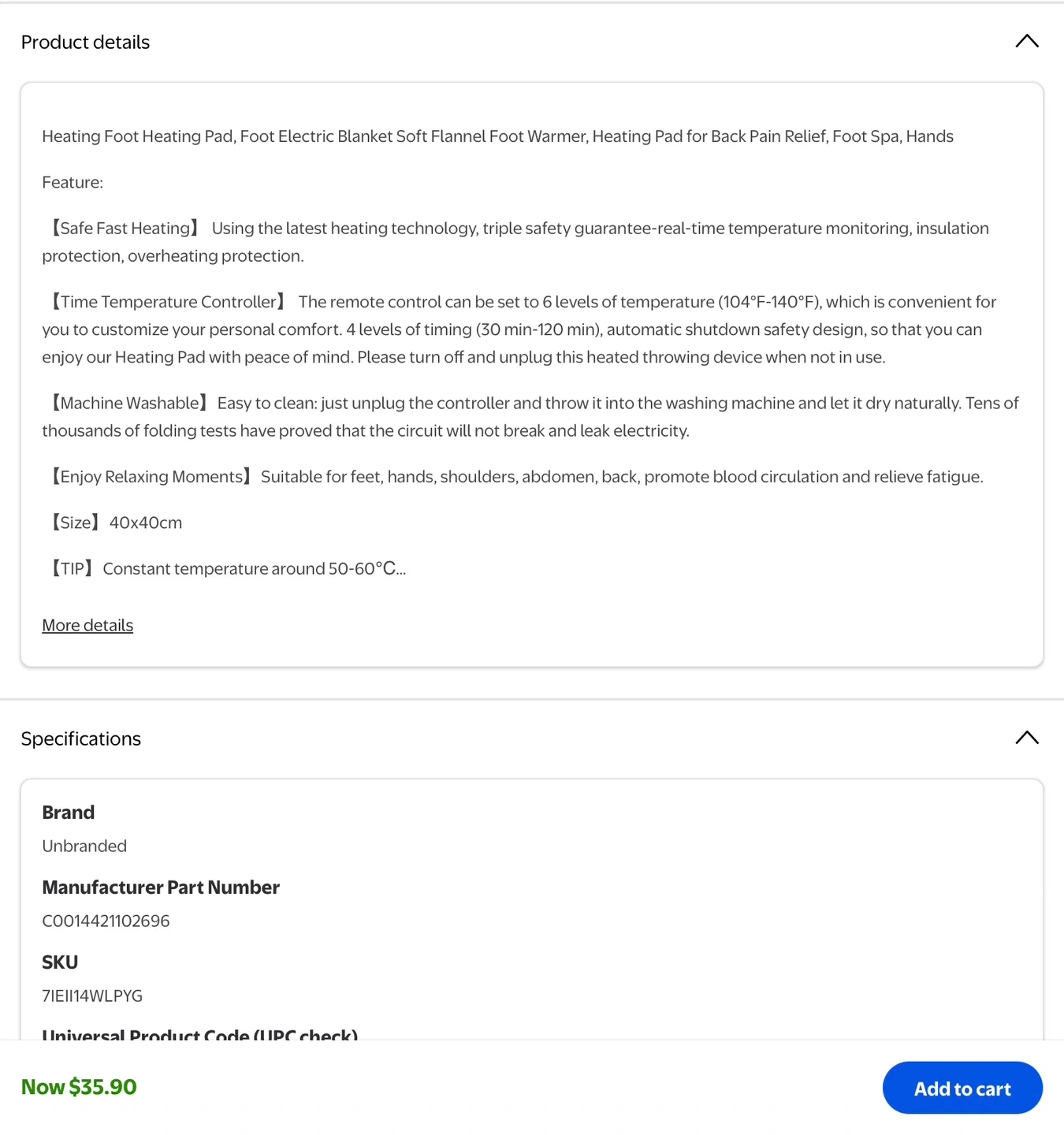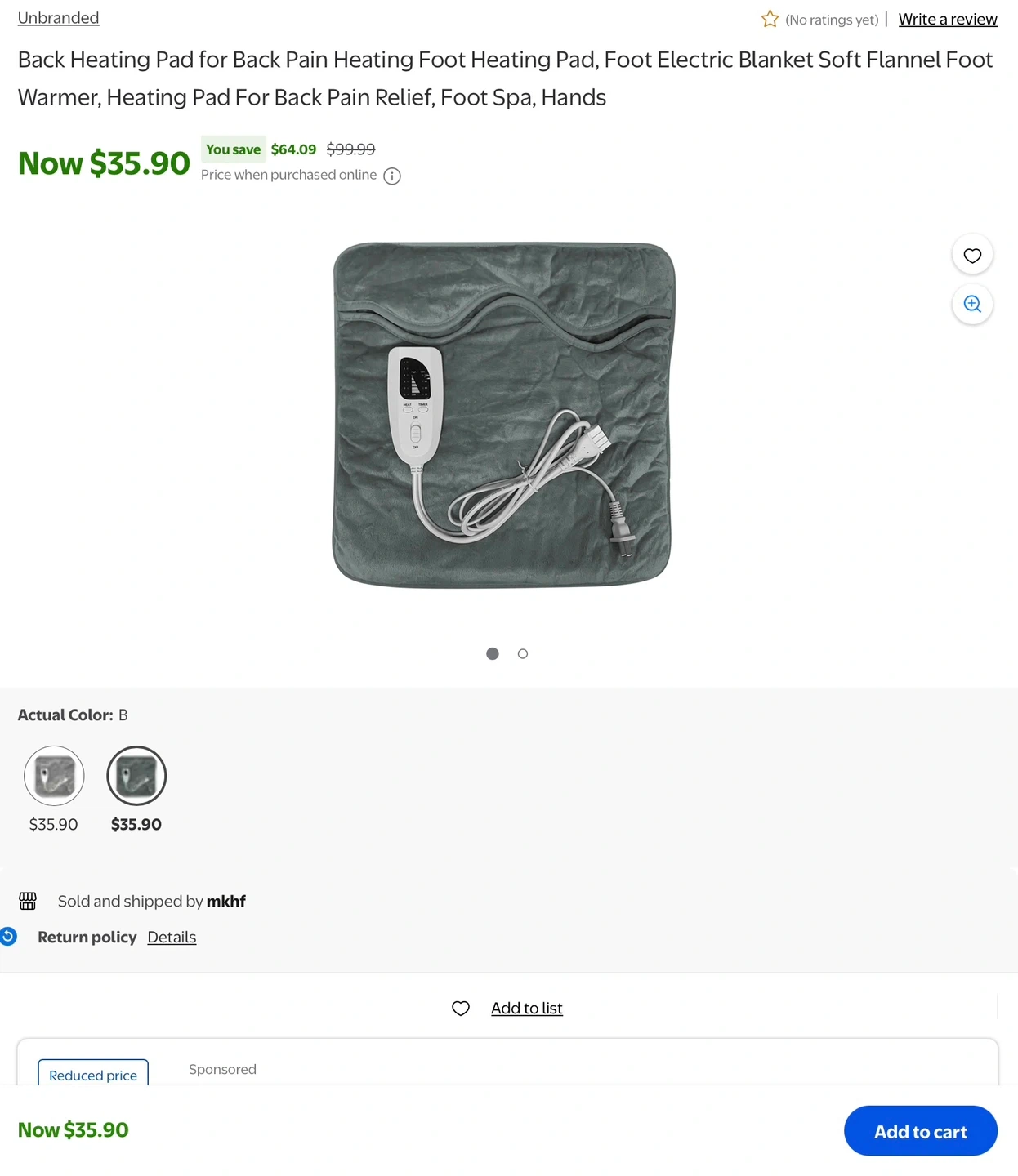 This is an unused soft flannel heating pad, perfect for back pain relief, or warming feet, hands, and shoulders. It's machine washable and has 6 temperature settings with a 30-120 minute auto-shutoff. Size is 40x40cm