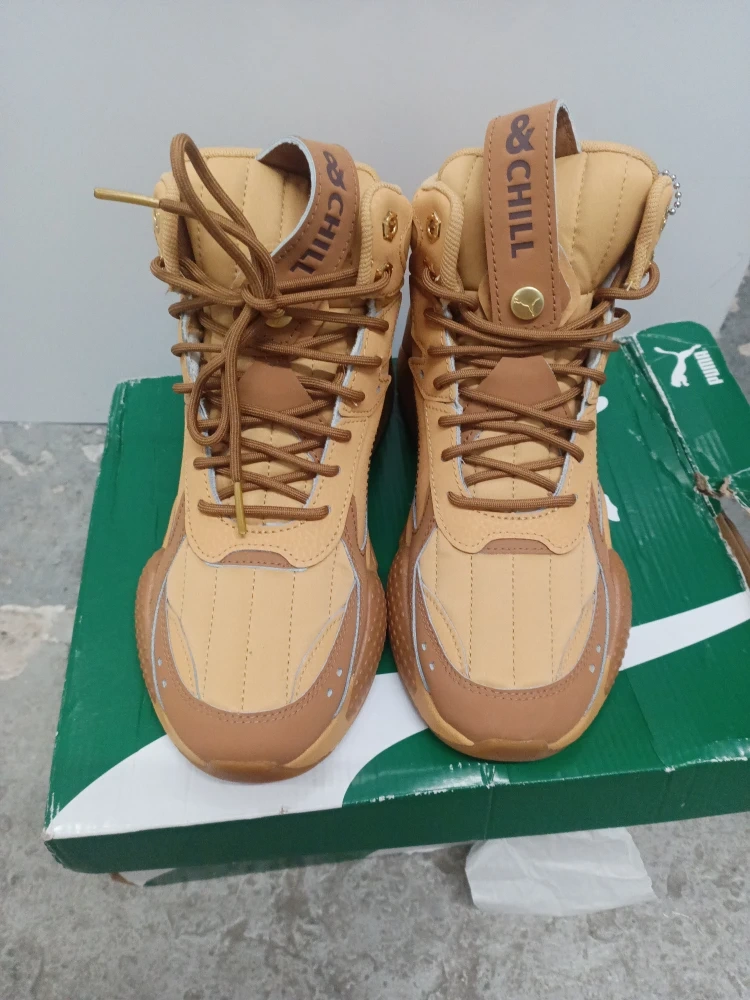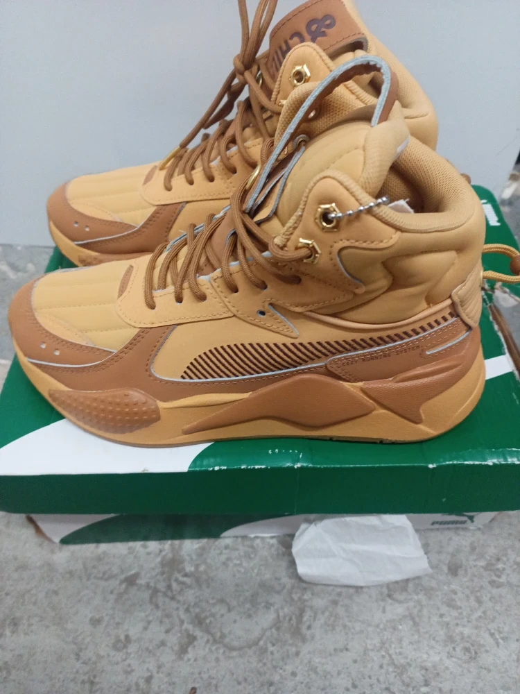 Get ready for winter with these Puma RS-X Winterized boots! They come in a stylish tan color and are perfect for the colder months. The shoes are in great condition and come with the original box. These boots are sure to keep you warm and looking good!