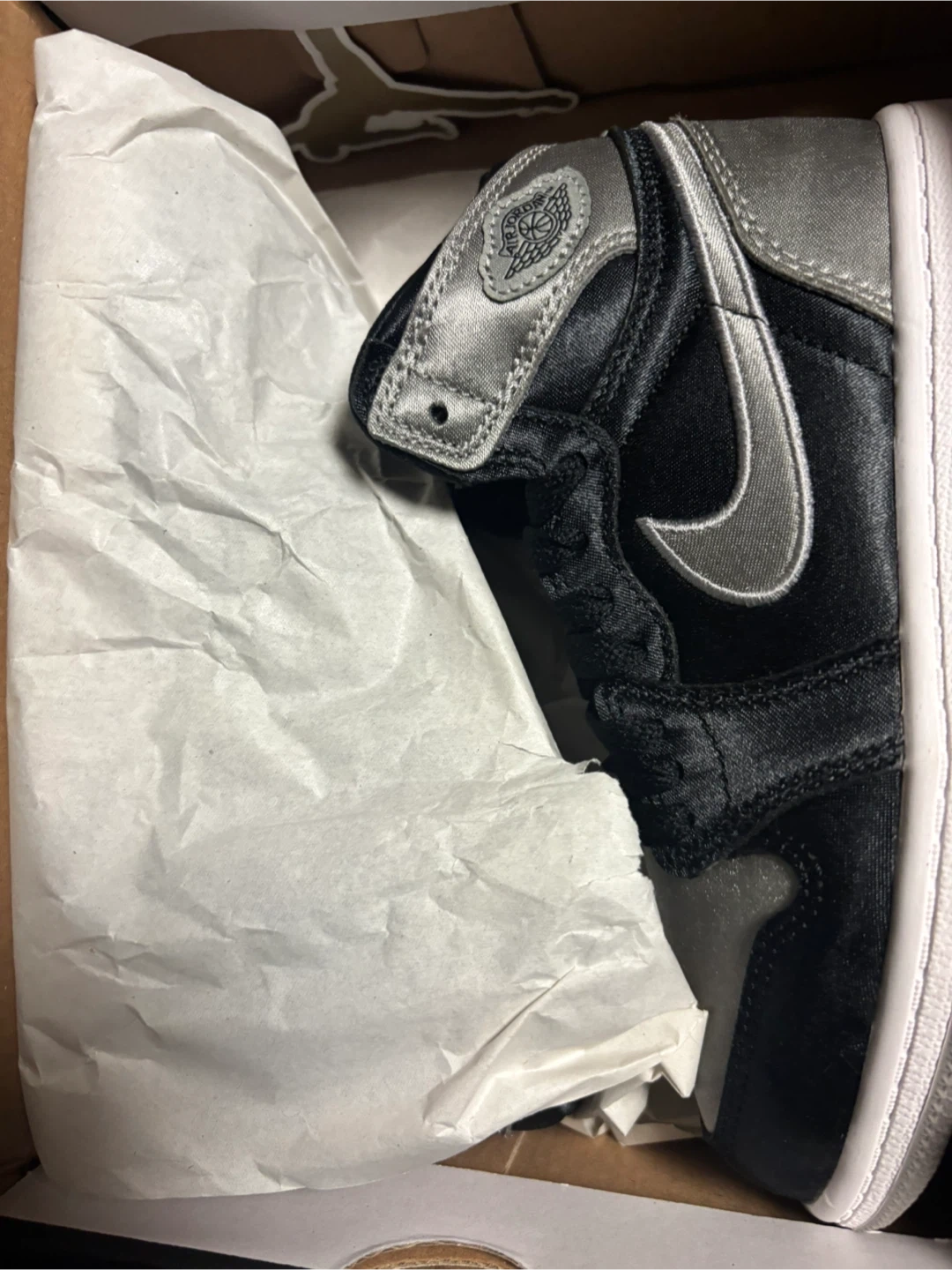 These are Jordan 1 Retro High OG (PS) sneakers in a black and medium grey colorway. They're a kids' size 12c. Includes original box.