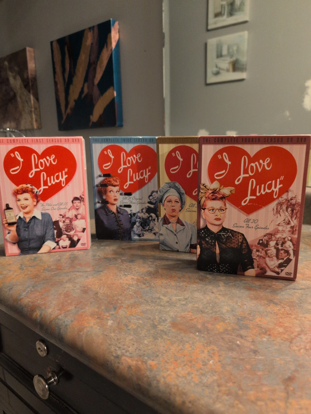 These are the complete first and fourth seasons of the classic "I Love Lucy" show on DVD. Each season includes all original episodes. These DVDs are a great addition for any fan of classic television!