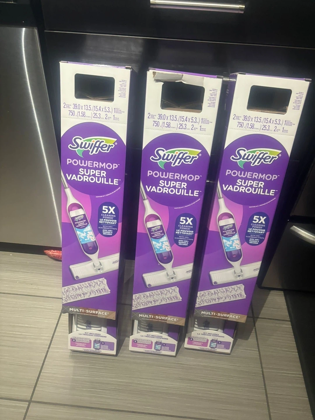 This Swiffer PowerMop cleaning kit comes with a mop and refill pads. It's designed for multi-surface cleaning. Get your floors sparkling clean!