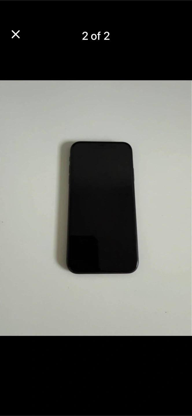 iPhone 11 in black. It's in its original box. This phone comes with a dual-camera system.