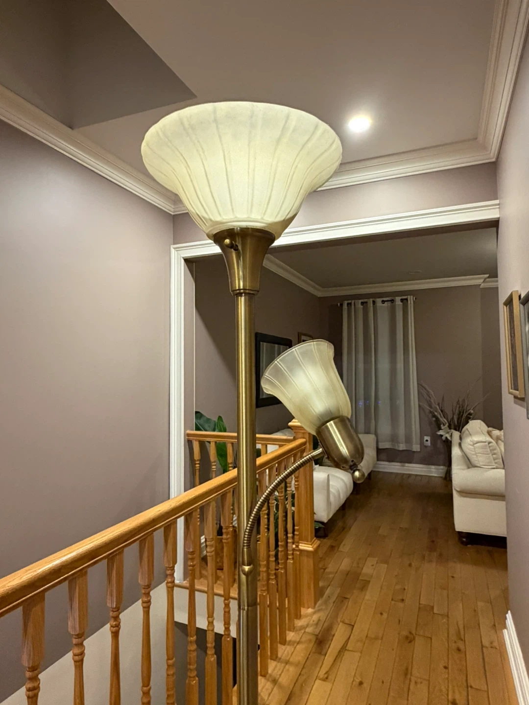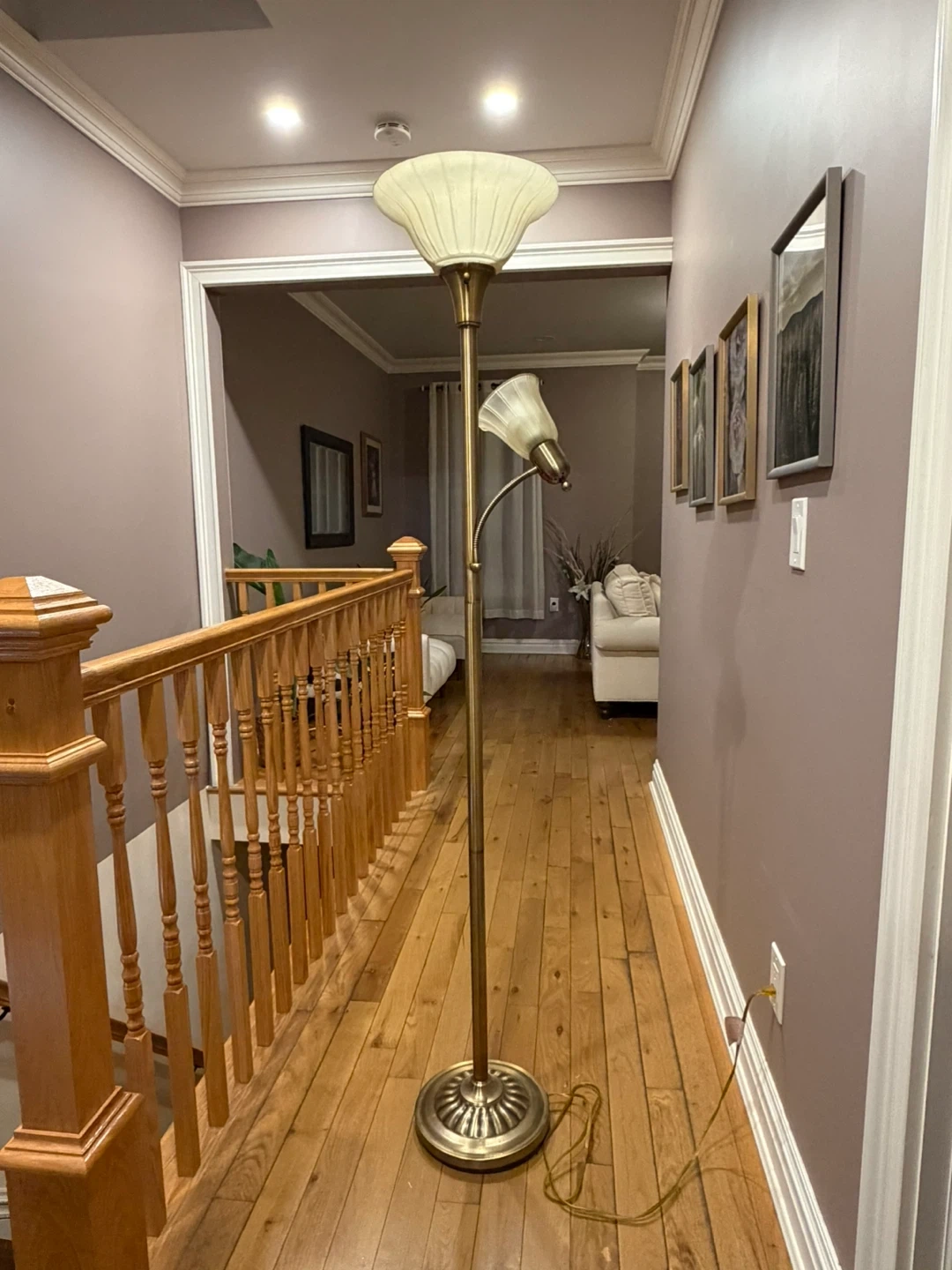 Elegant floor lamp to brighten up your space! It features a classic design with two lamps, perfect for adding a warm and inviting glow to any room.
