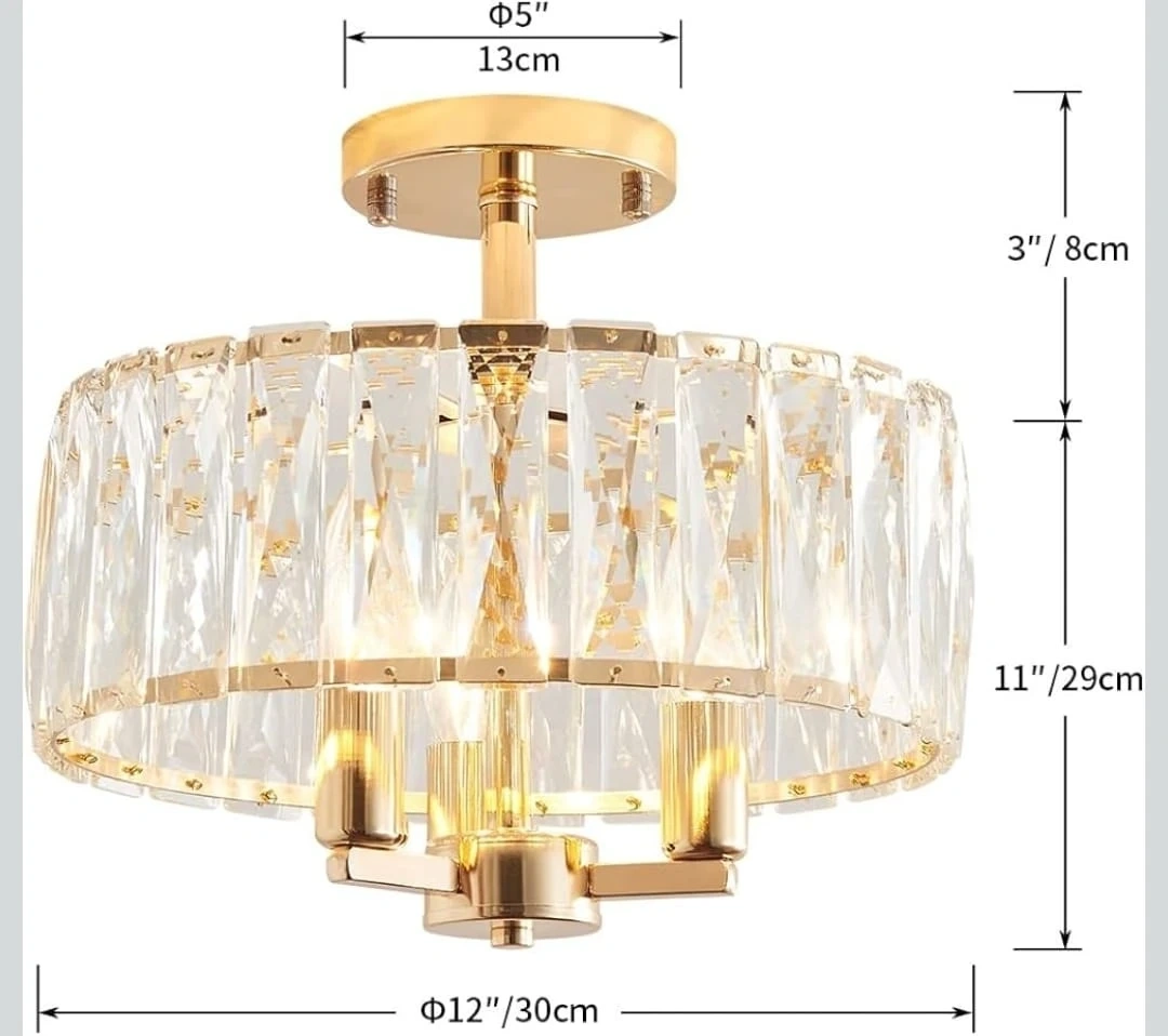 Gold Crystal Semi-Flush Mount Ceiling Light Fixture