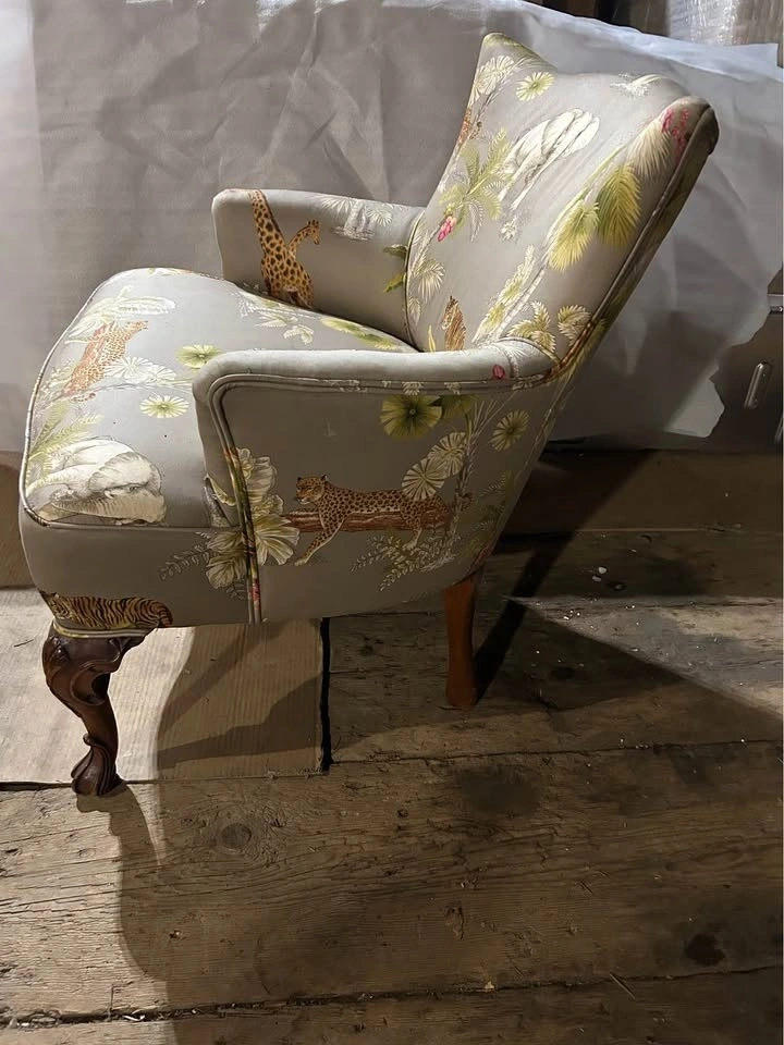 Used Upholstered Wingback chair with Safari Print fabric