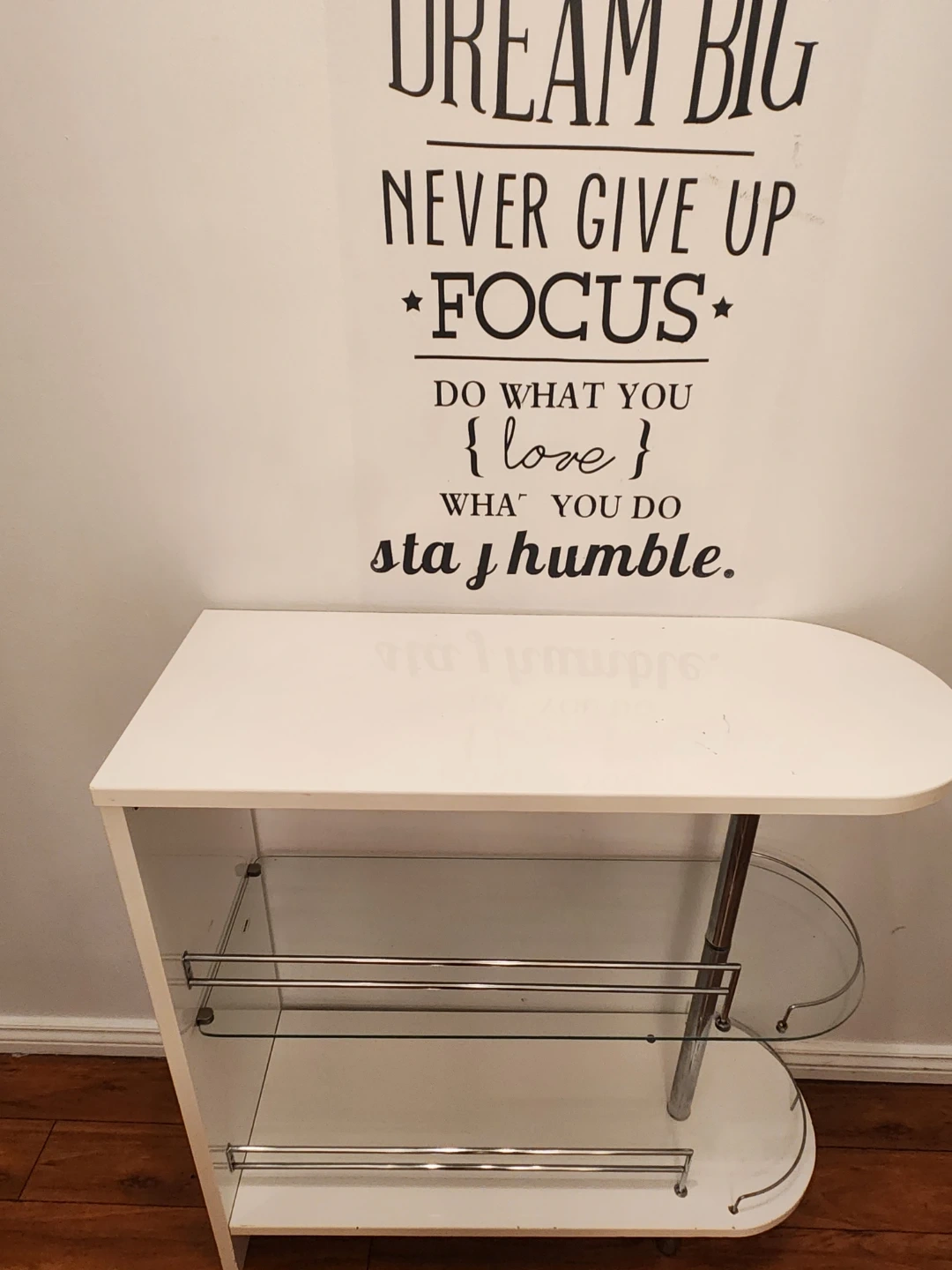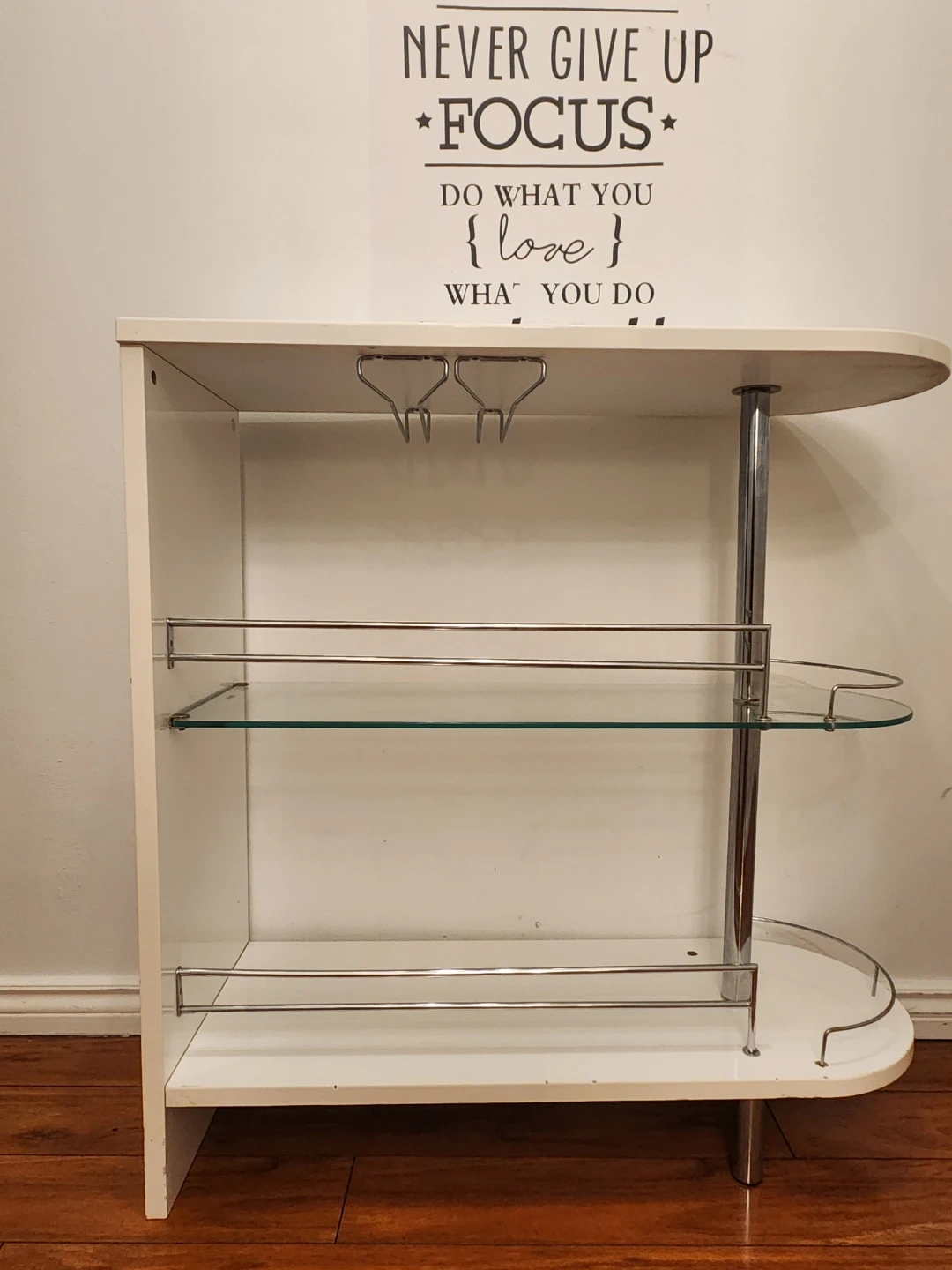 White Bar Cart with Glass Shelves