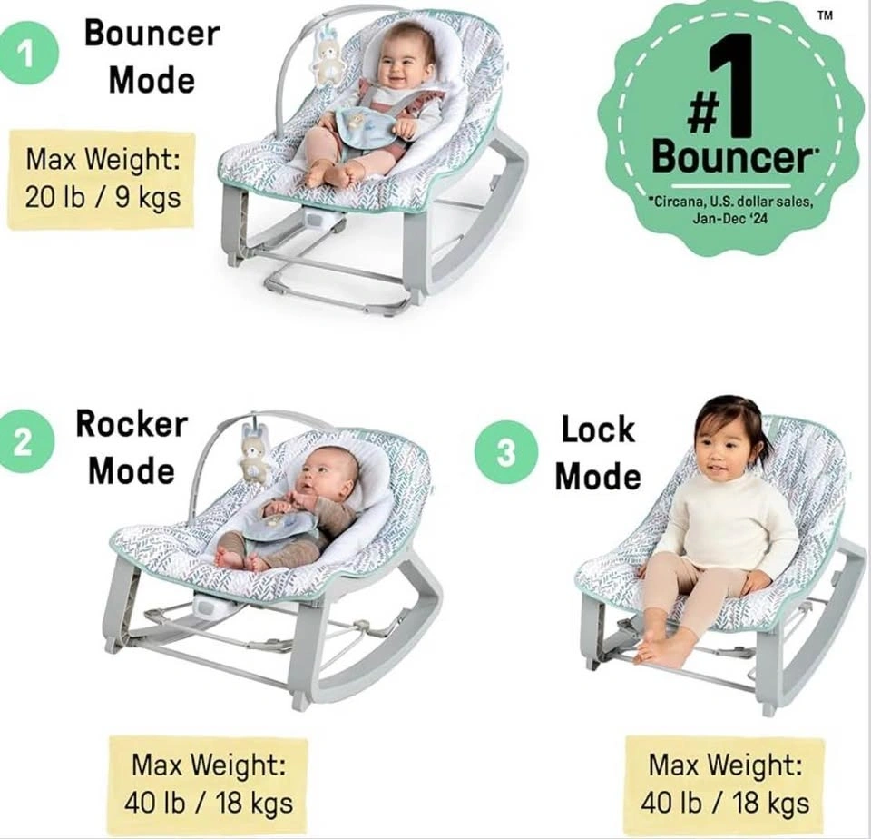 This Ingenuity baby rocker and bouncer is ready to soothe your little one with its calming vibrations and gentle rocking motions. This item is in good used condition, freshly cleaned and ready for a new home. The neutral colour palette is very easy on the eye. This rocker has two modes: bouncer mode (max weight 20lbs) and rocker/locked mode (max weight 40lbs). It has a removable toy bar for easy access to your baby. Converts from rocker to stationary seat. Calming vibrations to soothe baby. Removable toy bar with 2 plush toys. Adjustable 5-point harness keeps baby safe. Looking at similar models sold here, I think $50 is a fair price. If you see this ad, then yes, it is still available.