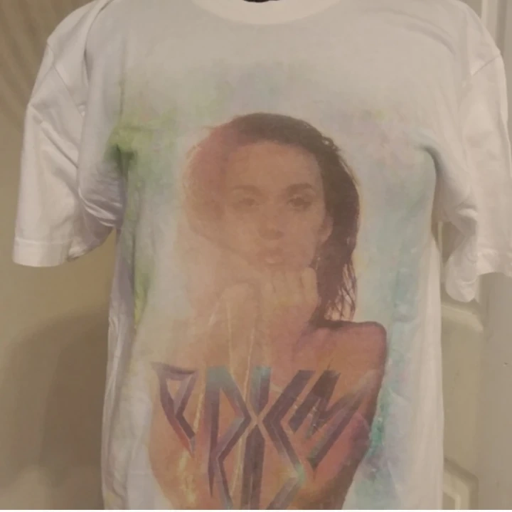 Hi this is a like new Katy Perry Prism t shirt size Medium see pictures for small mark on back of sleeve