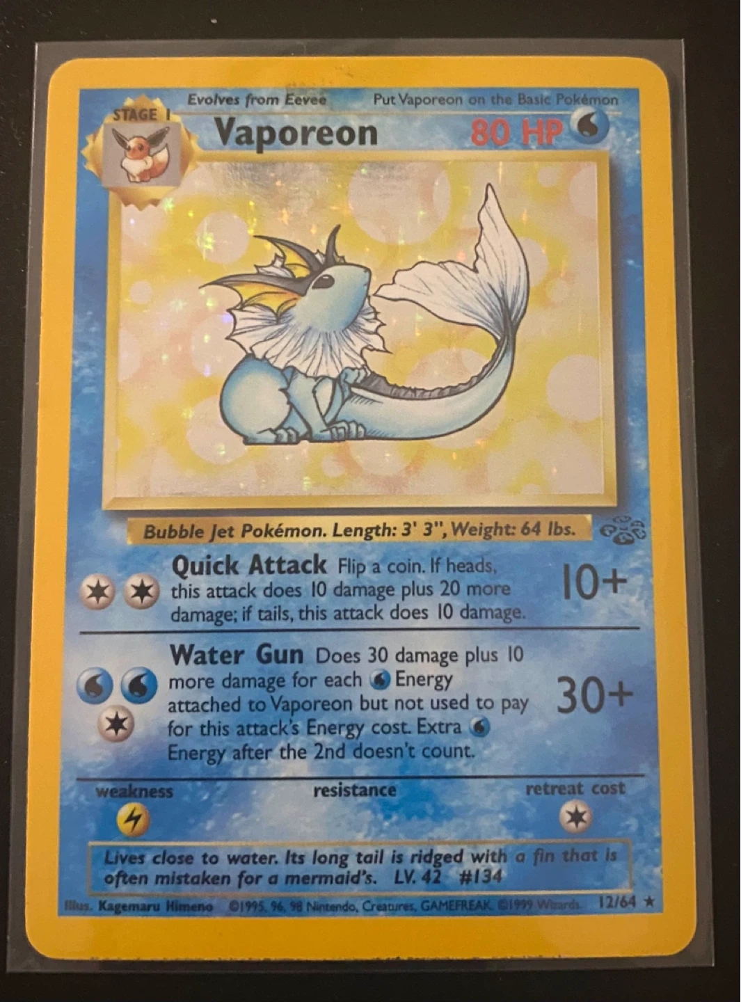 Holo rare Vaporeon Pokémon Card (1999) jungle 12/64