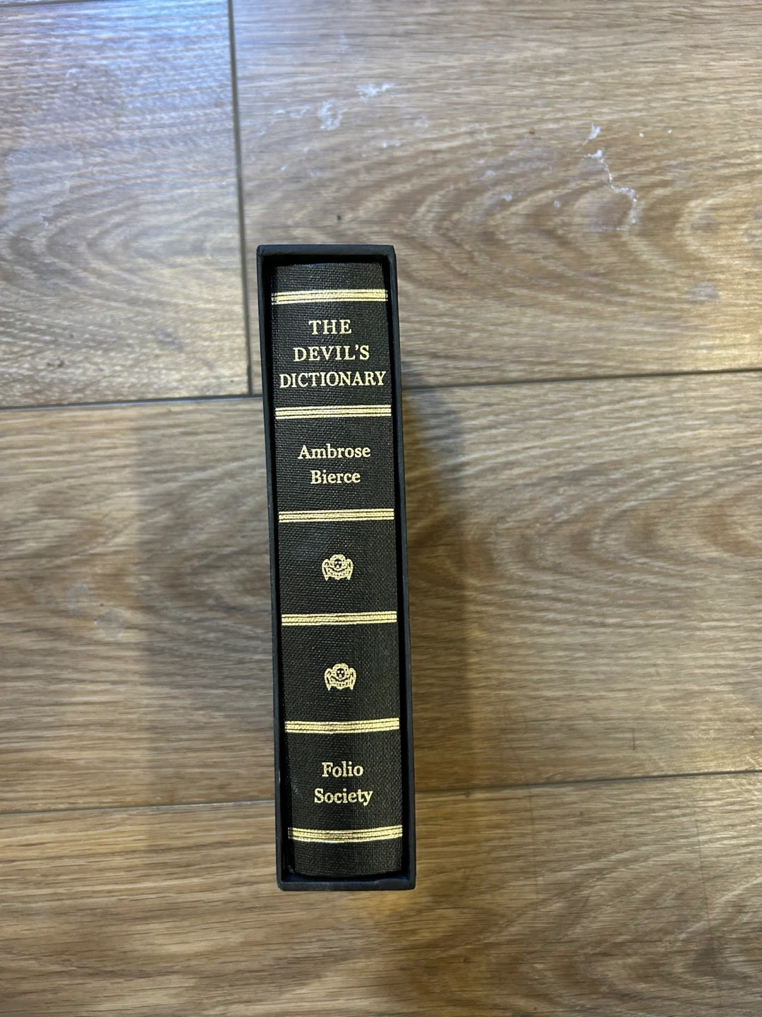 The Devil's Dictionary by Ambrose Bierce, published by The Folio Society in 2003. This edition is introduced by Miles Kington and illustrated by Peter Forster. It includes a slipcase for protection.