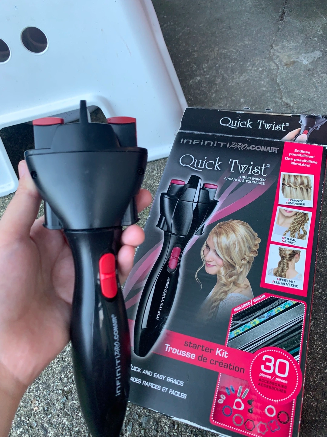 Selling an Infiniti Pro Conair Quick Twist hair braider! It's in great condition and comes with the original box. This handy tool makes braiding hair quick and easy. It also includes a starter kit with 30 pieces of accessories to get you started with creating fun and stylish braids
