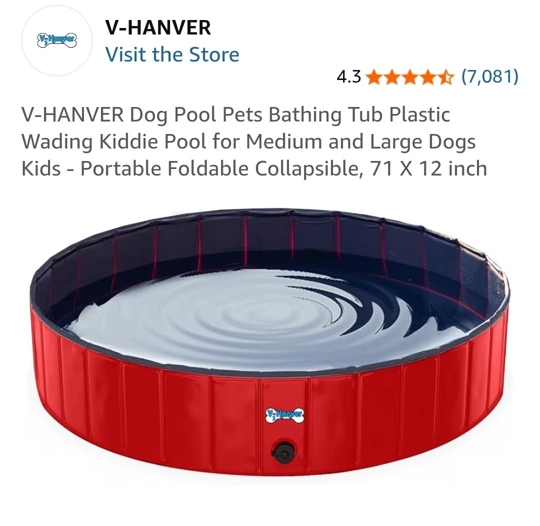 26Brand new Looking to sell a V-HANVER dog pool! It's a plastic wading kiddie pool, perfect for medium and large dogs. It's also great for kids. It's portable, foldable, and collapsible, making it easy to store when not in use. Dimensions are 71 x 12 inches