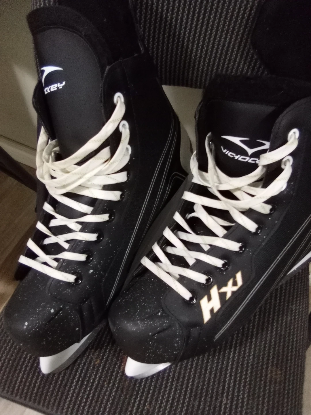 70Selling a pair of V хоккей HXI ice skates. They are black with white detailing and stainless steel blades. Ready for some fun on the ice! Size 12