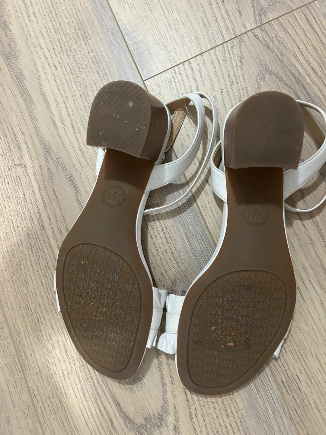 Michael Kors White Leather Block Heel Sandals