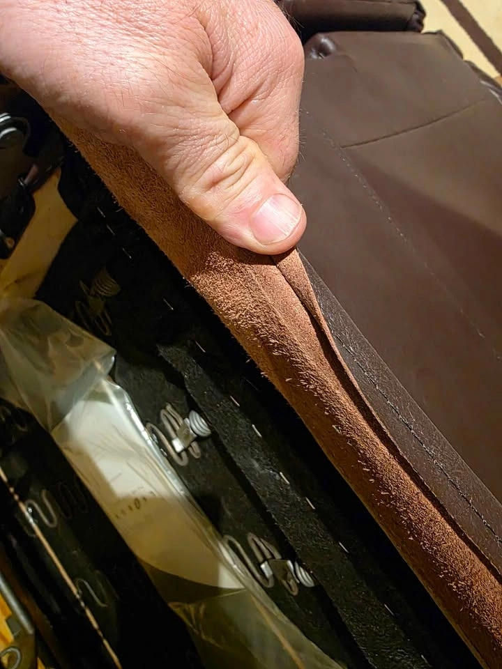Genuine leather all around, no vinyl. The loveseat is sold. The sofa recliners and coffee table set is currently disassembled into 6 pieces and 2 rails, making it very easy to transport and potentially fit in a minivan or mid/full-size SUV. You can move and assemble it with ease. Please see pictures for condition; other than cosmetic wear, everything works perfectly. There are 2 recliner seats in total. The set is disassembled for storage.