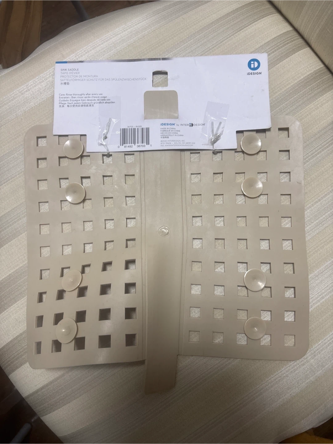 Protects your sink from scratches and scuffs. It's made of durable plastic and measures 11 IN X 12 IN. Comes with suction cups to stay in place. Great for any kitchen sink!