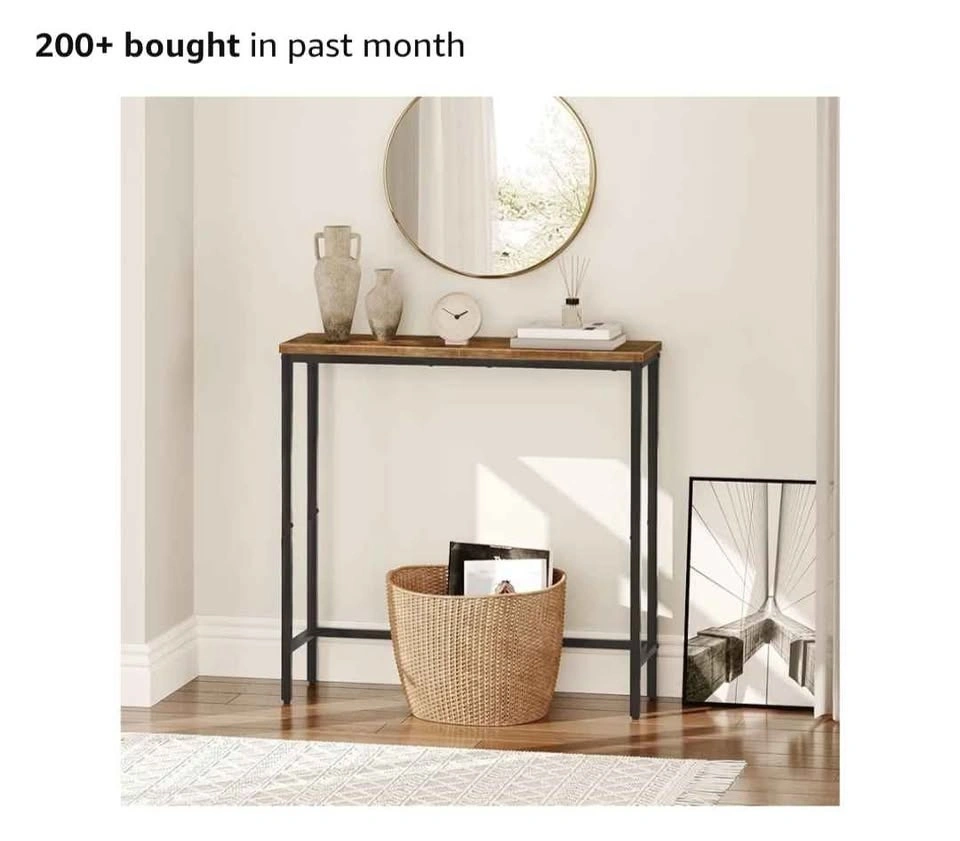 HOOBRO Narrow Console Table, 75 cm Entryway Table, Small Sofa Side Table, Display Table, for Hallway, Bedroom, Living Room, Foyer, Rustic Brown and Black BF75XG01. It's assembled and easy to carry. Pick up at Markham and Ellesmere.