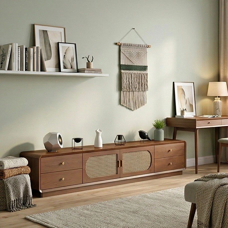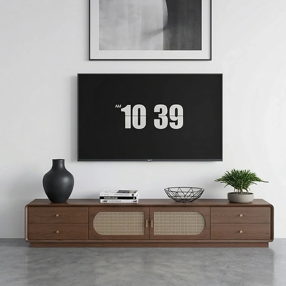 Classic Rattan TV Console - Storage Cabinet