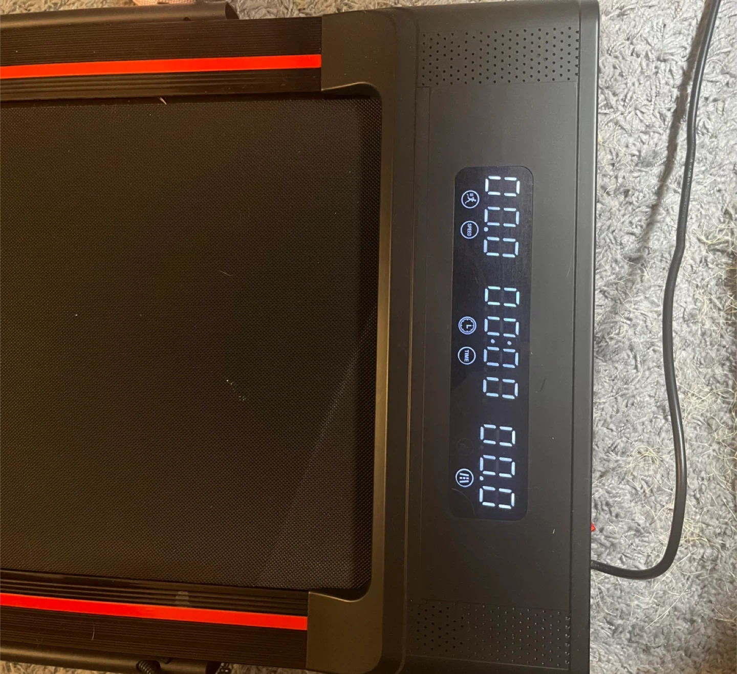 Collapsible design with LED display that tracks speed, distance, time, and calories. Multiple speeds to suit your pace. Includes remote for easy control.