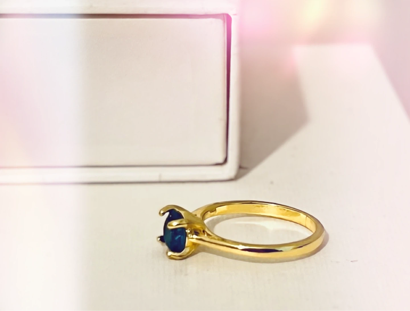 Gold-Tone Ring with Deep Blue Stone