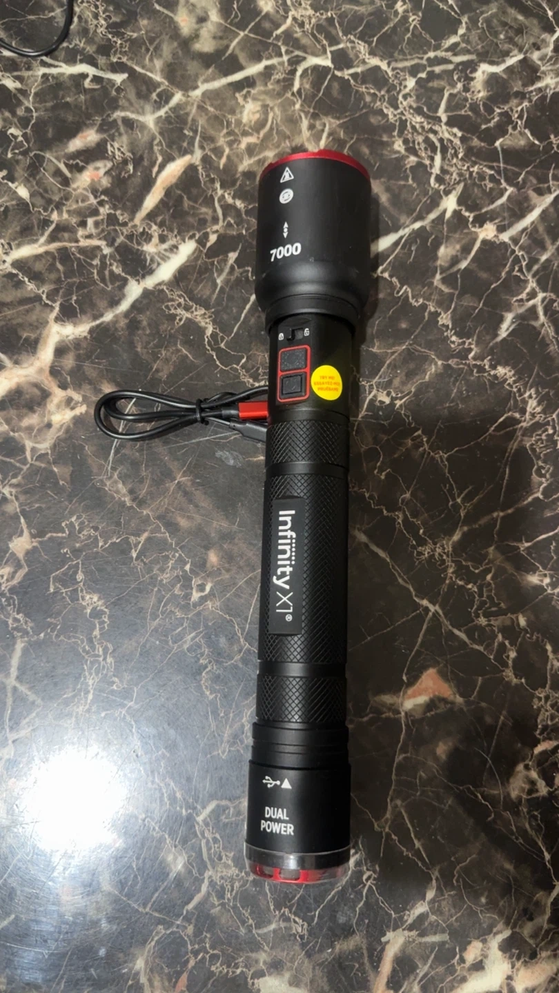 Selling an Infinity X1 flashlight. It features a dual power source and a bright 7000 lumen output. Great for camping, emergencies, or just keeping in the car!