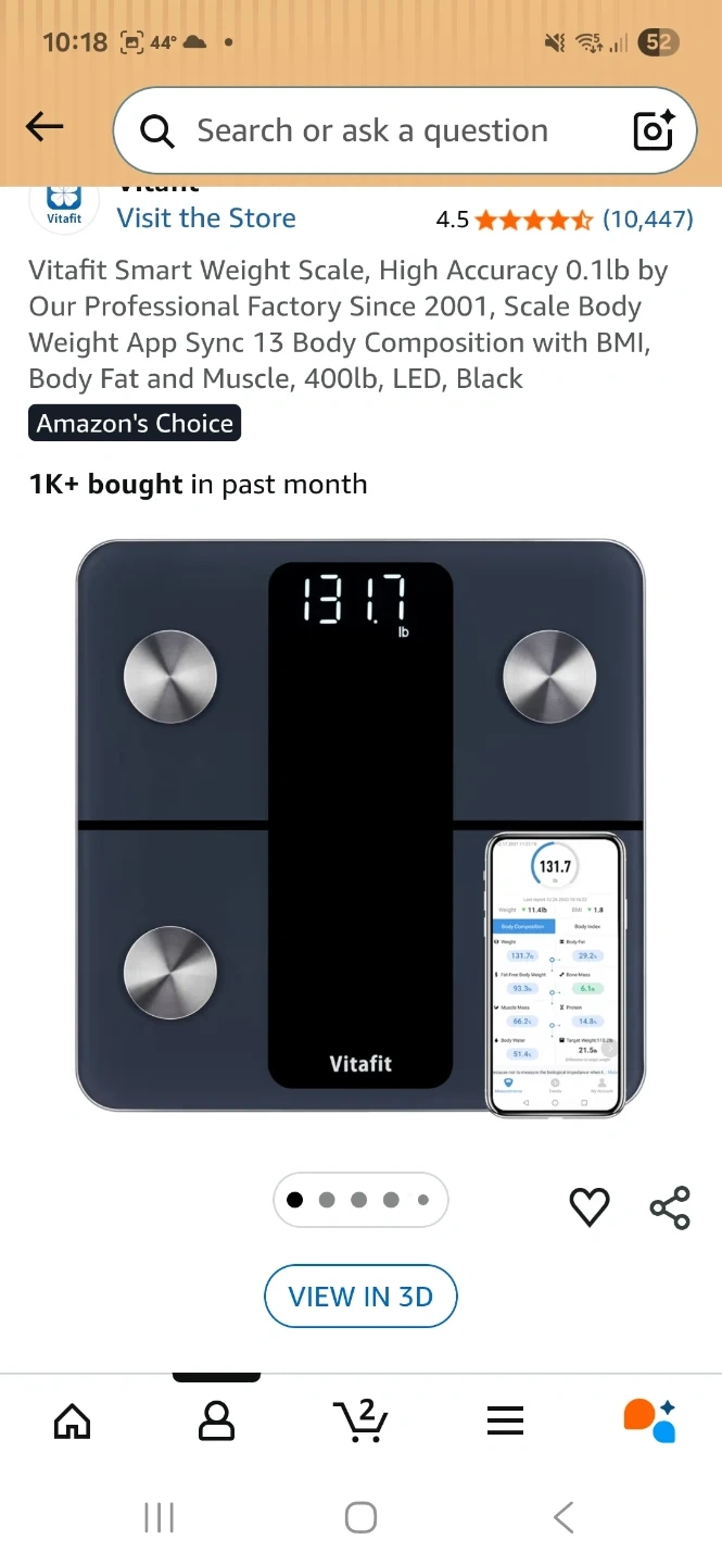 Vitafit smart digital weight scale with body composition analysis. Tracks BMI, body fat, and muscle. Maximum weight capacity is 400lb.