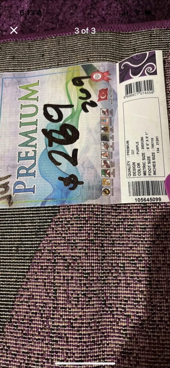 Selling a premium area rug in a beautiful purple colour. It measures 6'6" x 9'1". It's a great way to add some style to your space!