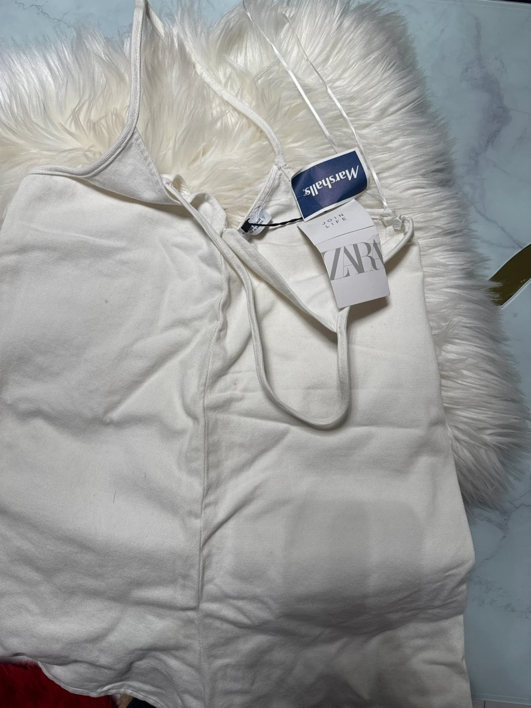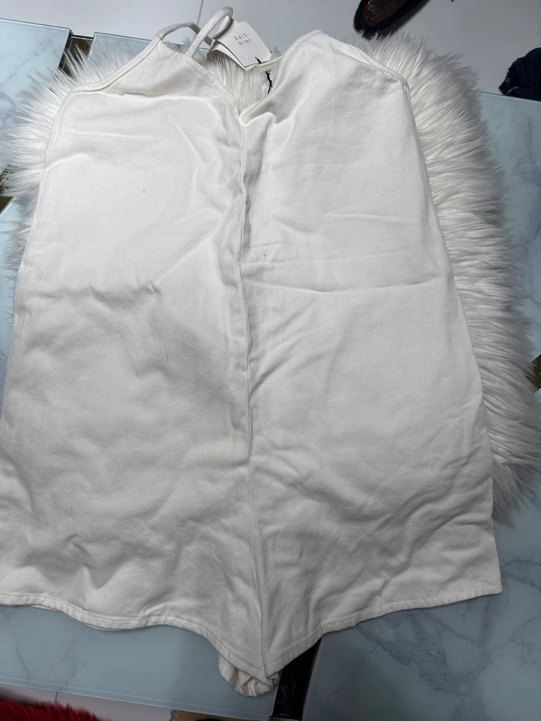 Selling a brand new Zara white romper! It's a super cute and comfy piece for summer. The material is soft and lightweight, perfect for warm weather. Never been worn and still has the original tags attached!