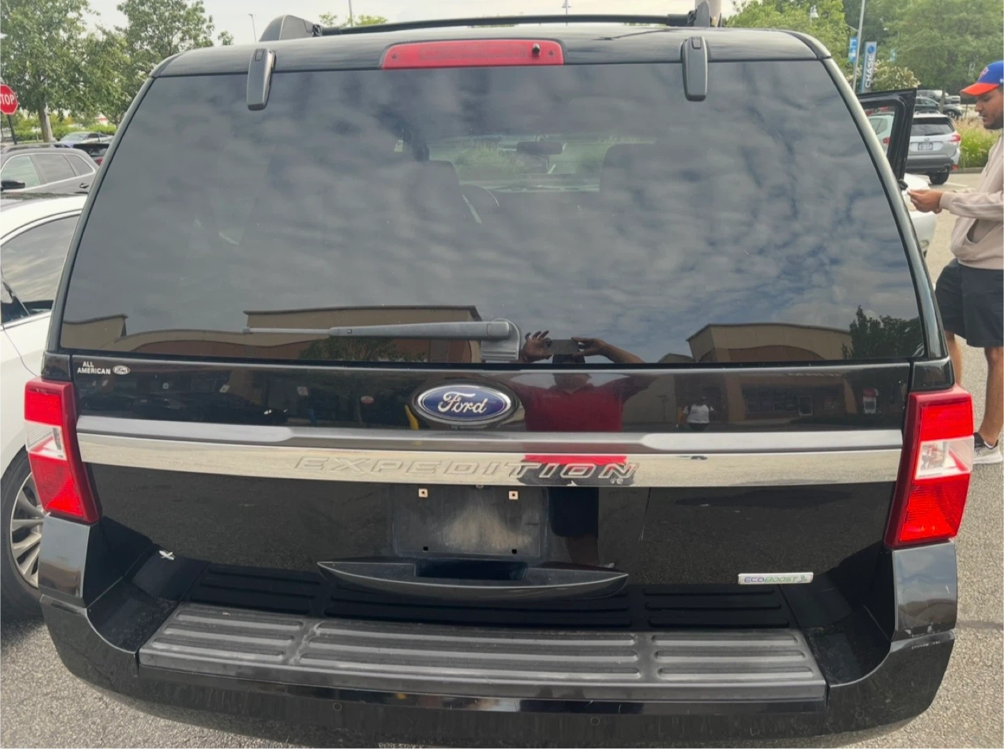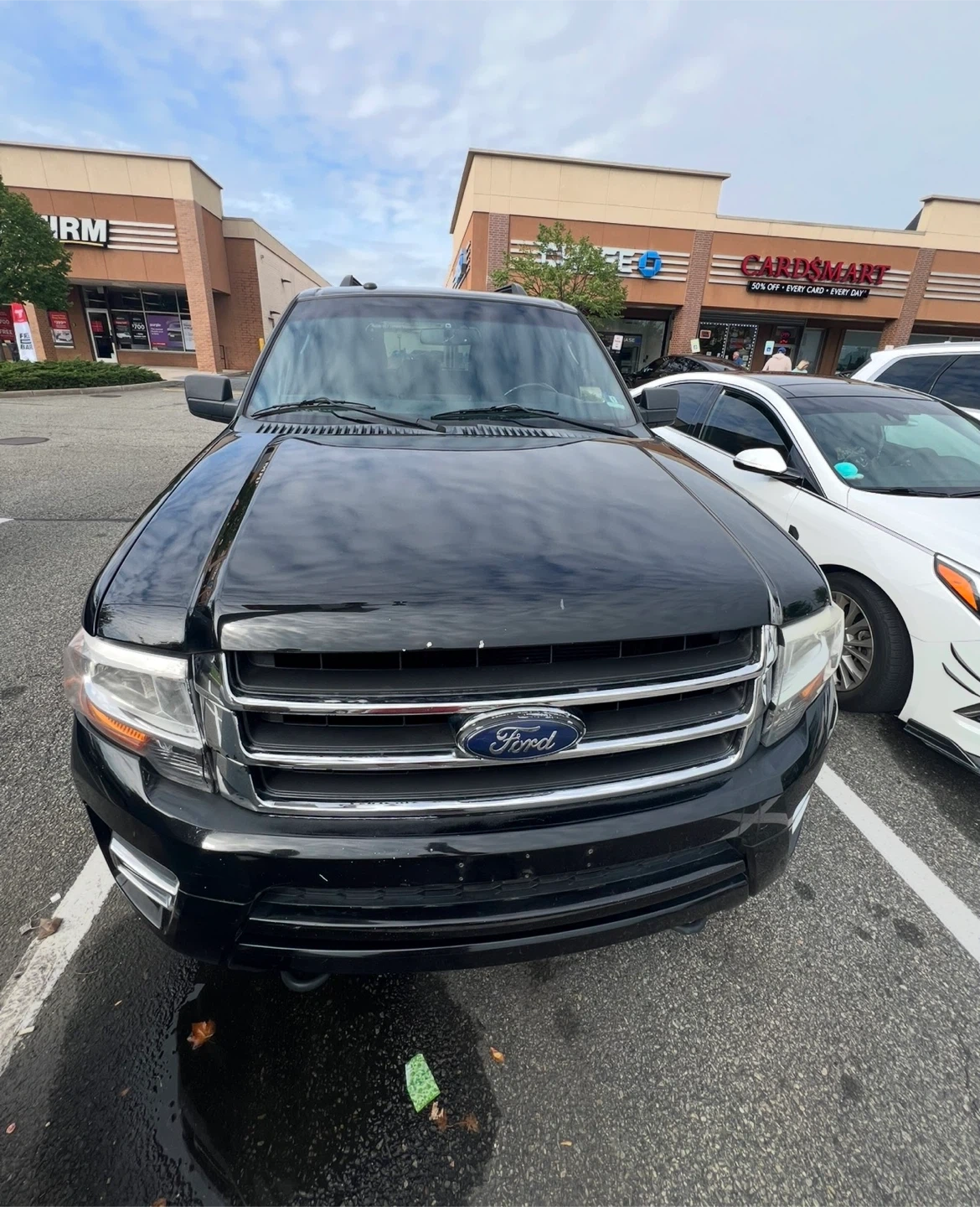 This is a black Ford Expedition SUV. It has a spacious interior and roof rails for extra storage. A reliable vehicle for families or hauling.