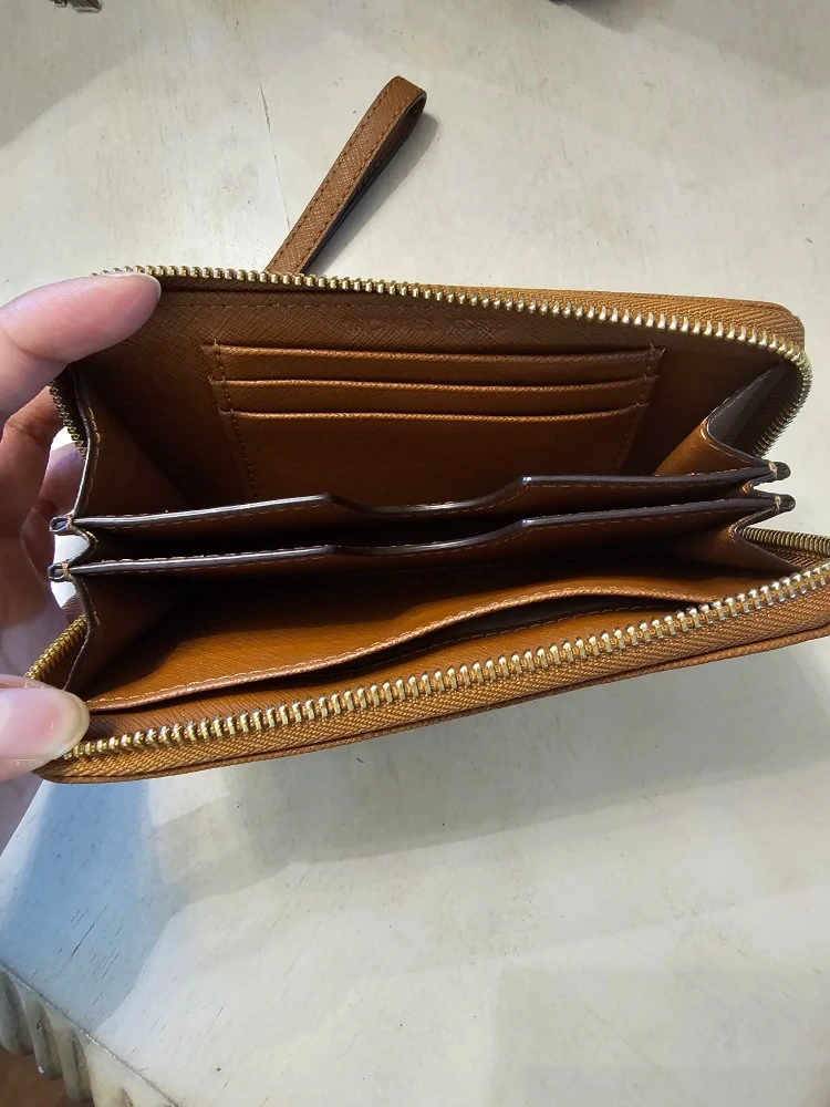 Selling a Michael Kors brown wristlet. It's in perfect condition and has a wrist strap. Perfect for keeping your cards and cash organized!