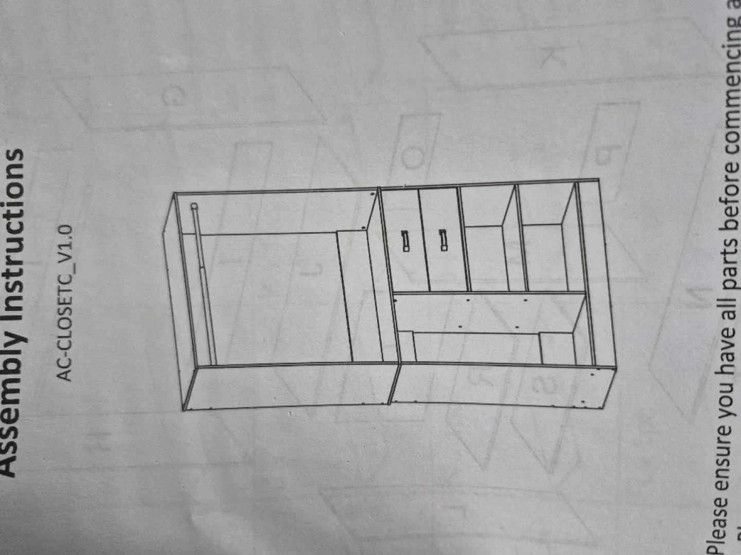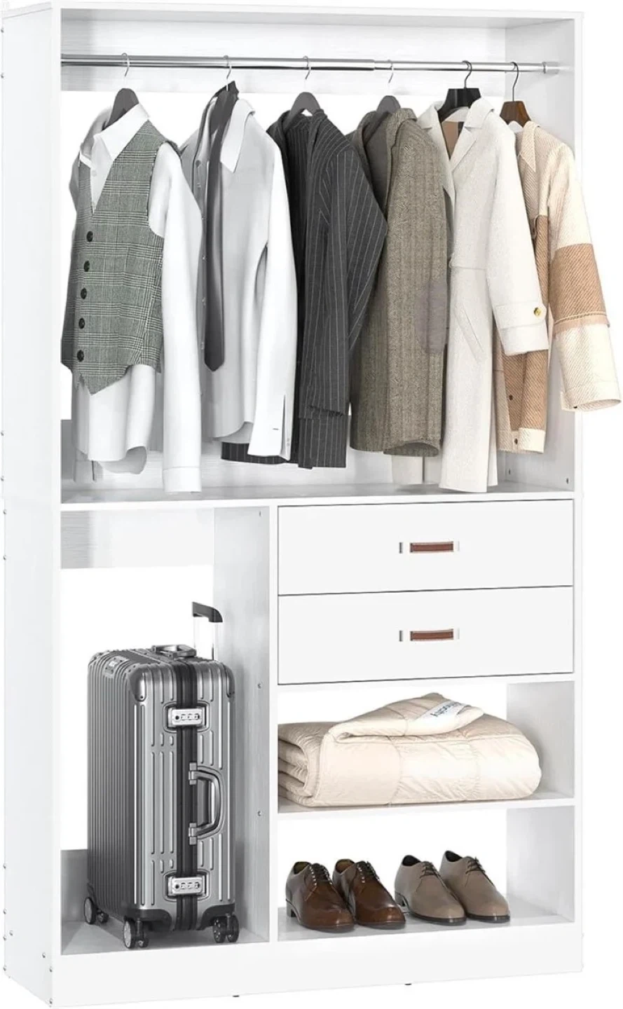 This is a new white wardrobe that comes with multiple drawers and shelves. It includes all necessary hardware for assembly. Assembly instructions are provided.