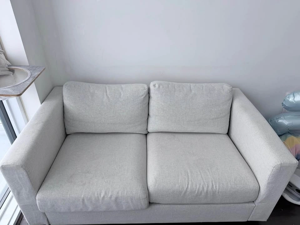 Selling an IKEA FINNALA loveseat sofa in Gunnared beige (2-seat). Neutral colour and condo-friendly size, perfect for living rooms or secondary seating. Structurally supportive and comfortable. Visible stains noted; otherwise sturdy and fully functional.