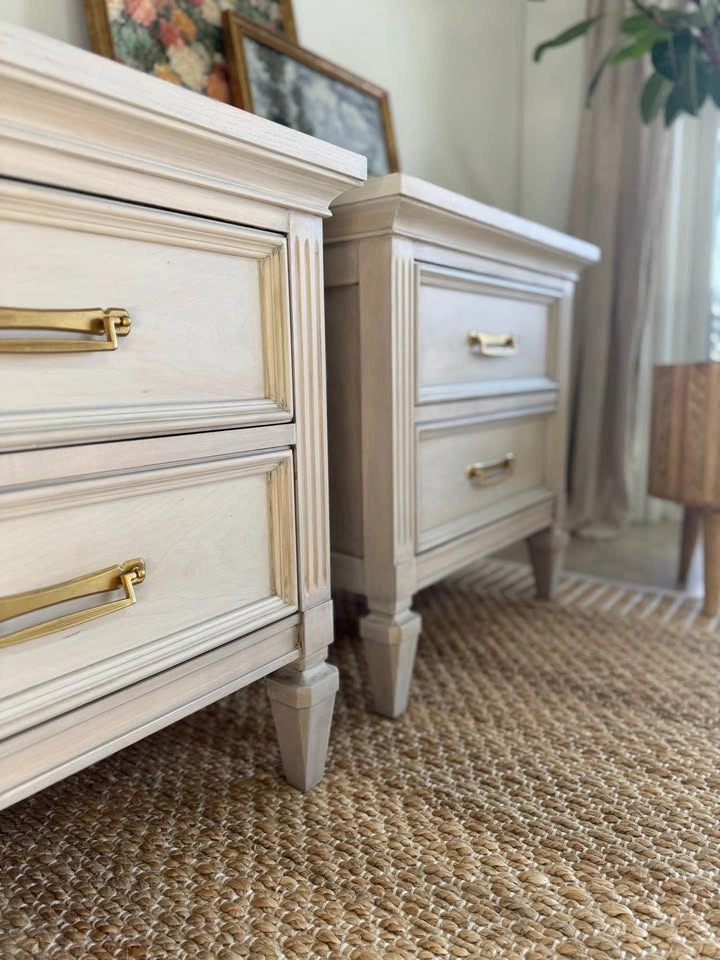 Each piece was carefully stripped down to raw wood and refinished in a soft, light bleached tone that highlights the natural grain while giving a clean, modern feel. The finish complements a wide range of styles—from coastal to farmhouse to modern organic.