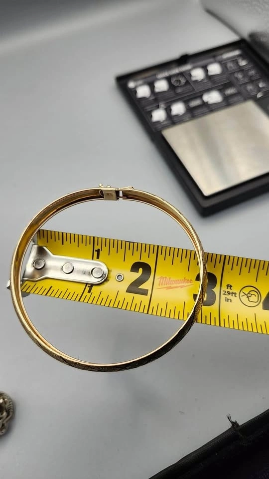 Gorgeous 9k solid gold bangle with clasp to open or close. Perfect for those who like to easily put on and remove.