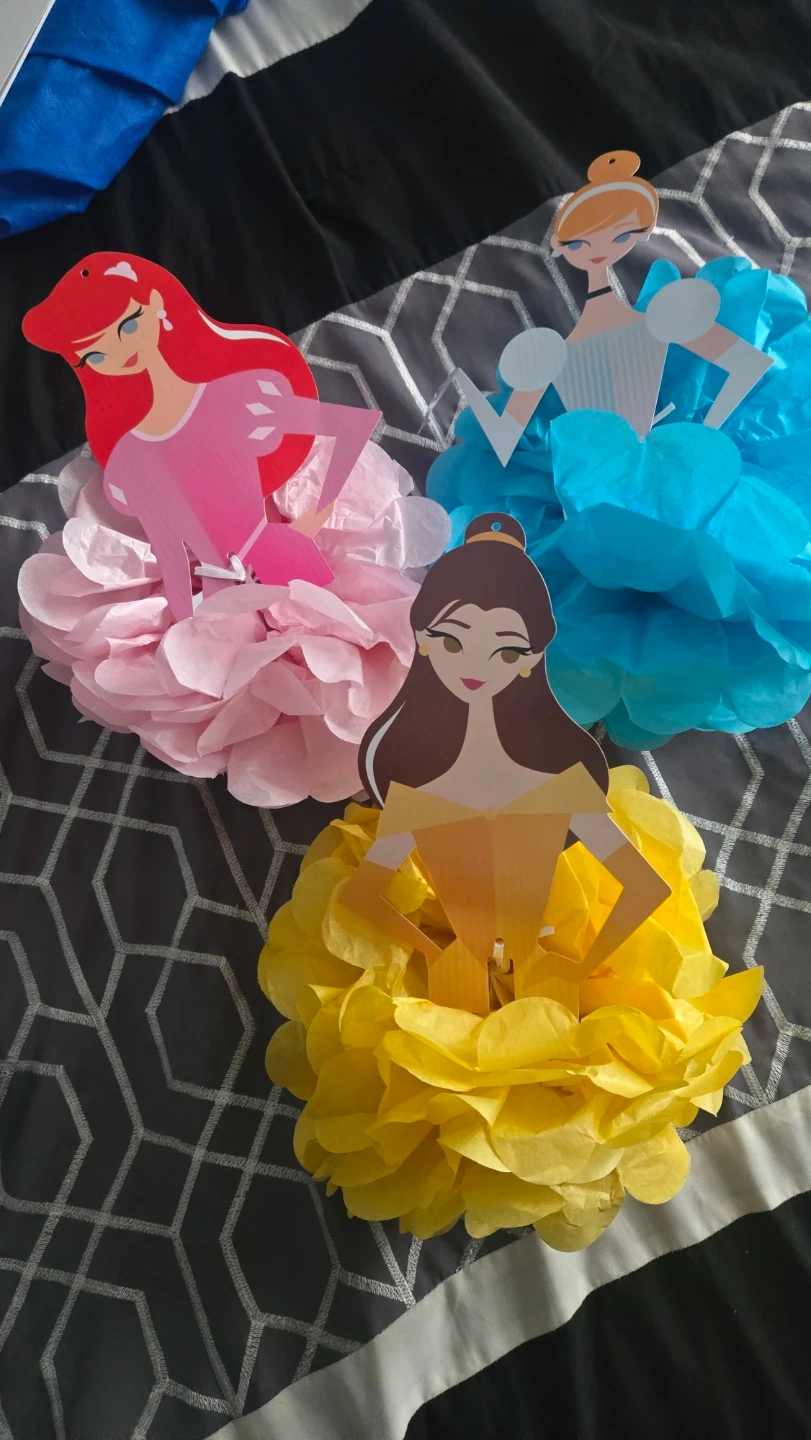 Selling a set of Disney Princess paper flower decorations! You get Ariel, Cinderella, and Belle. Perfect for a party or decorating a kid's room
